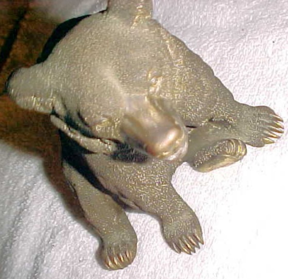 He perfected a unique technique of casting the bear’s fur, in which the wax model underwent a special chemical treatment in puffing up the wax surface before casting.