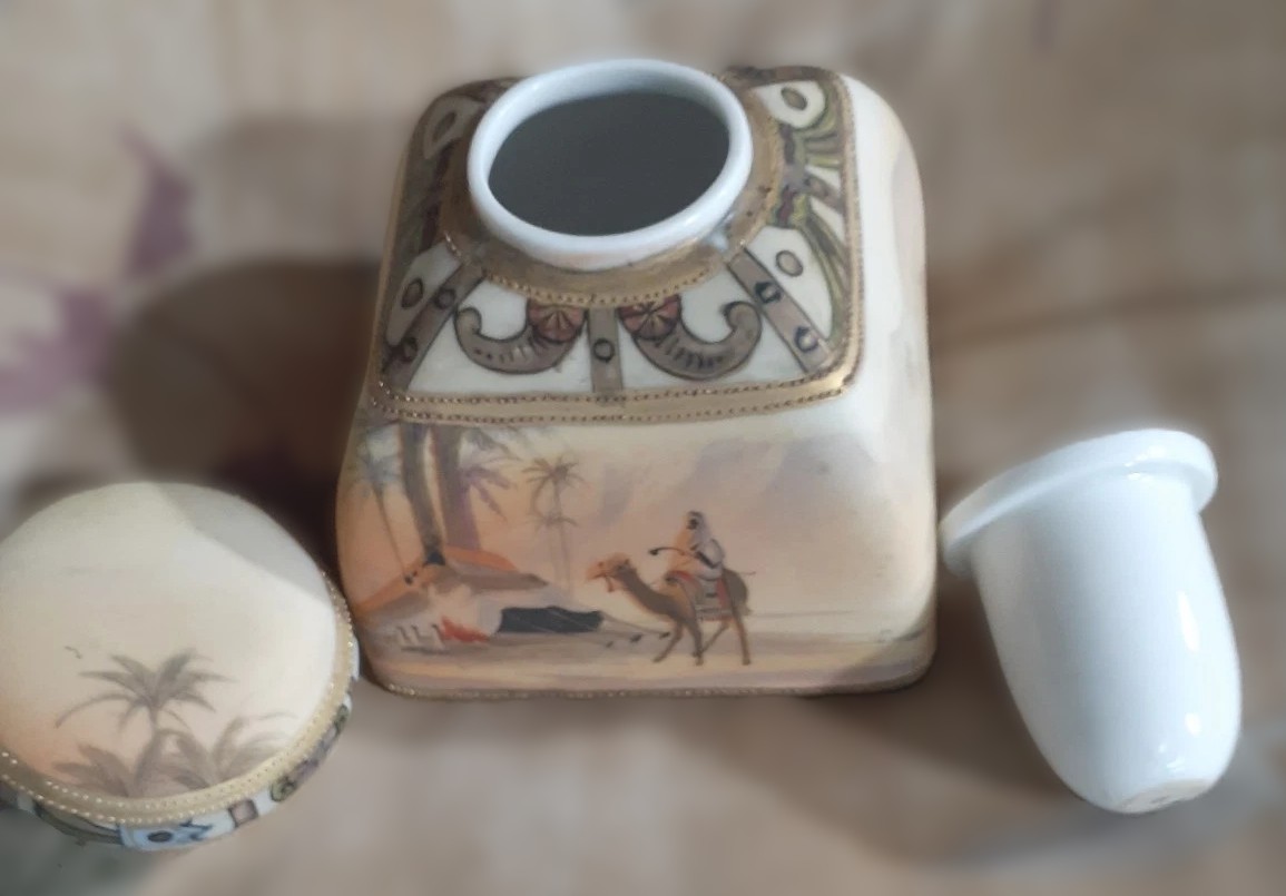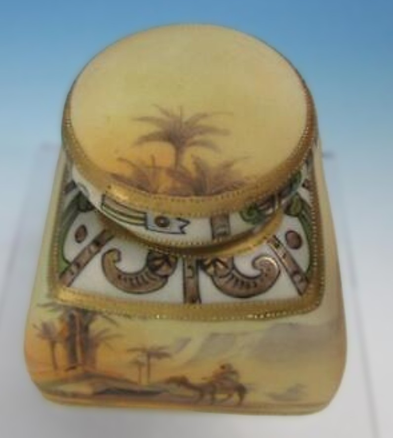 | The “Desert” Appeal | During the late 19th and early 20th centuries, “Egyptomania” and fascination with the Middle East were at a peak in the West. This influenced everything from architecture to the hand-painted scenes on porcelain like this one. |