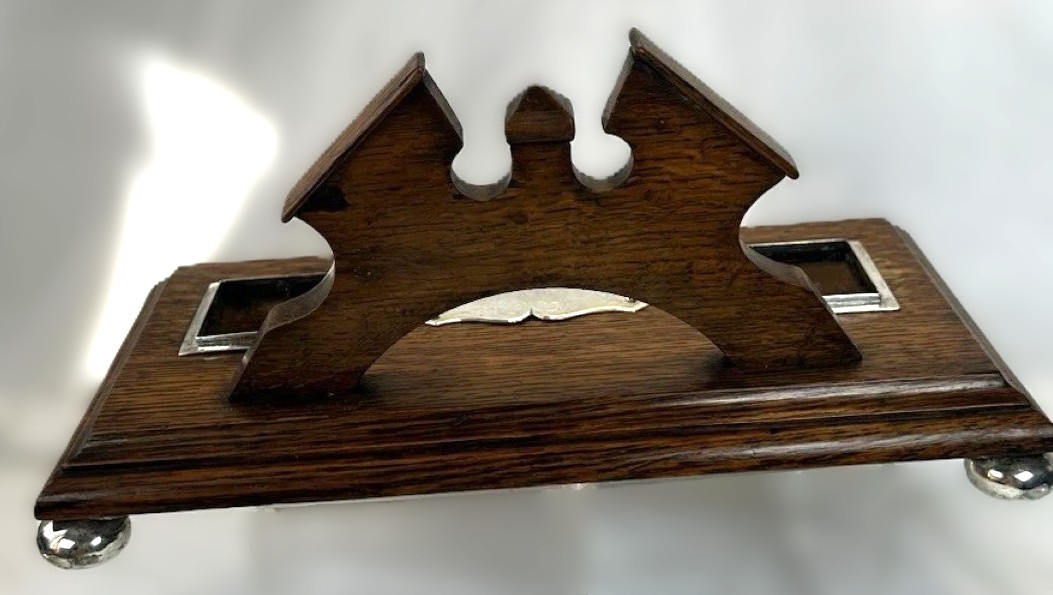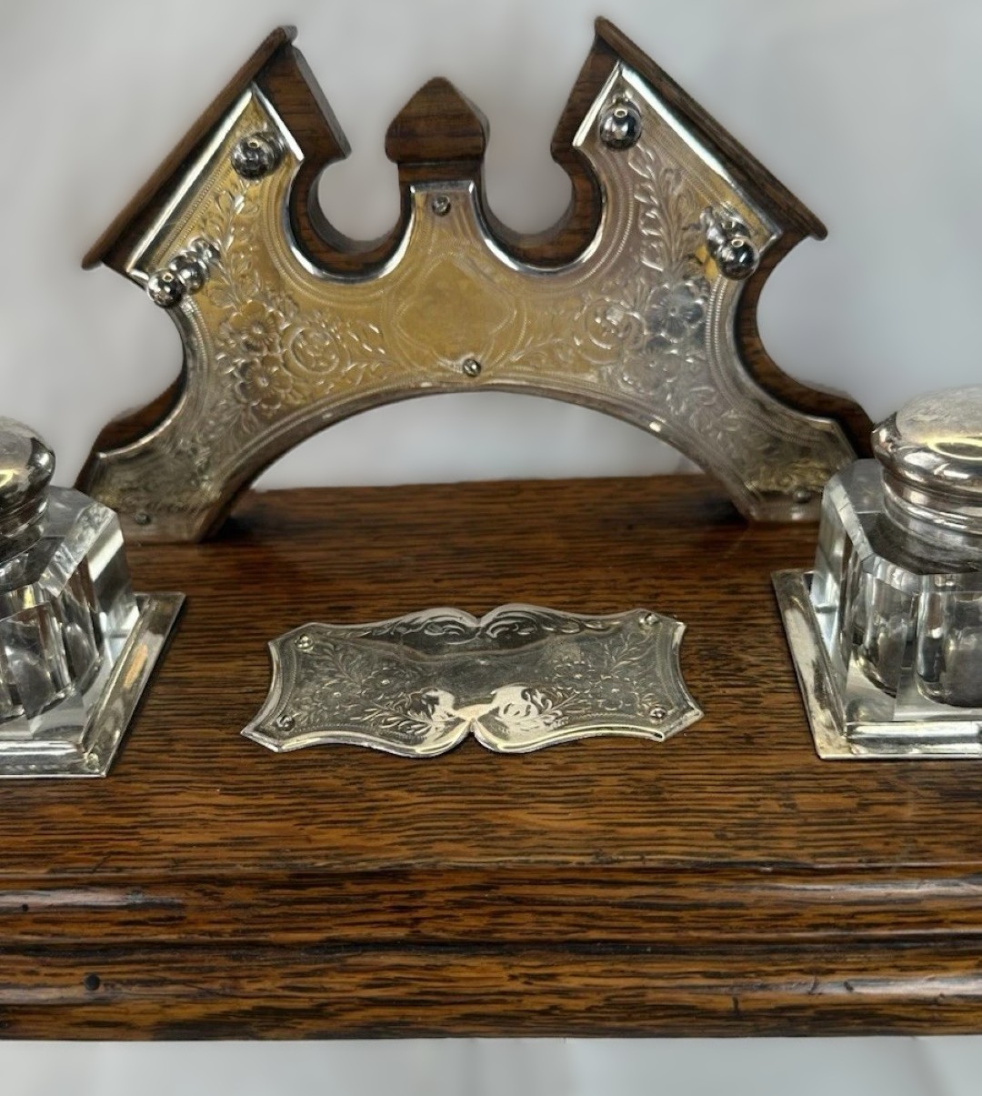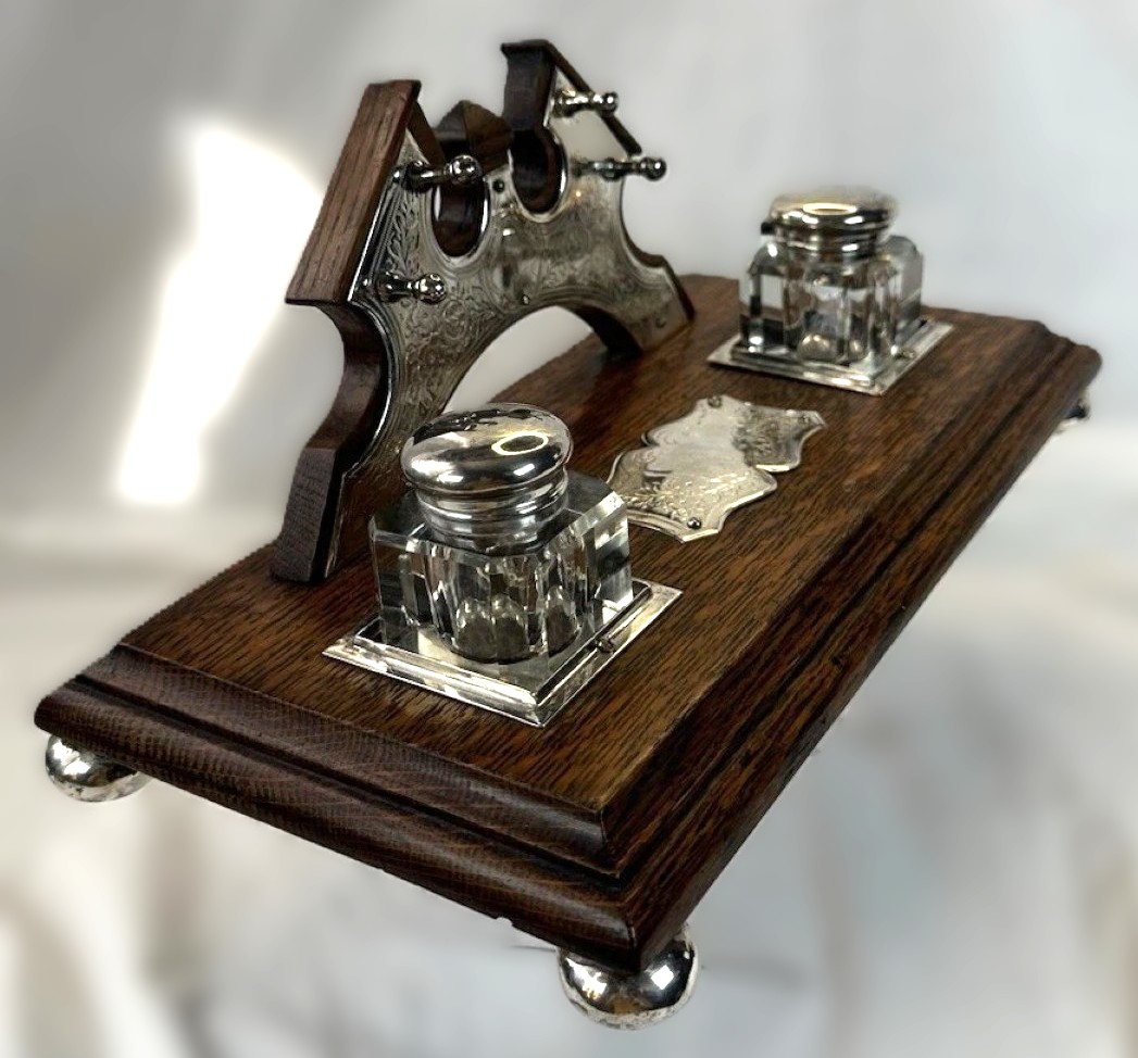 Oak and Silver Inkstand