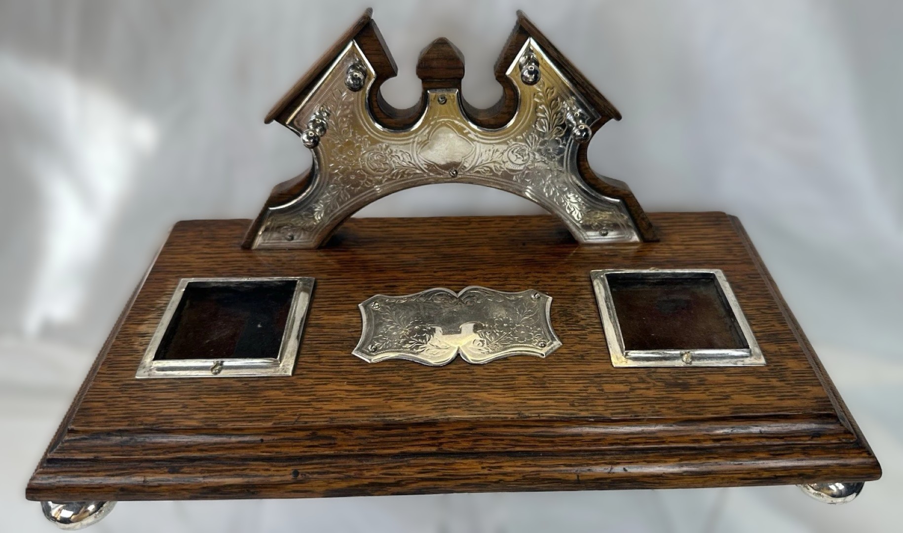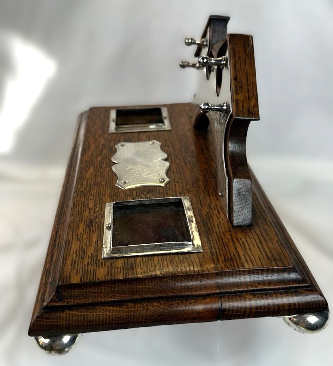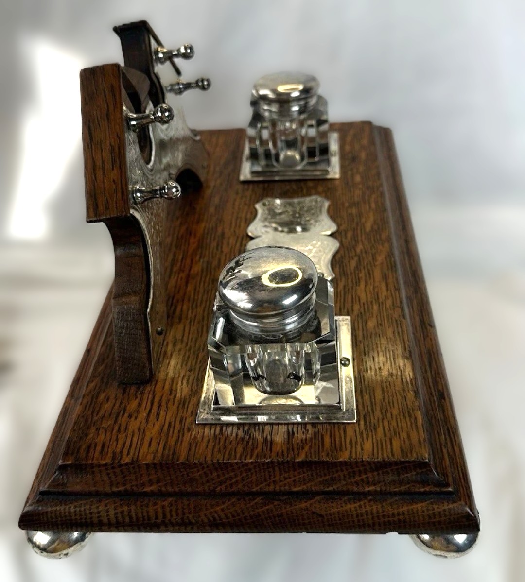Oak and Silver Inkstand