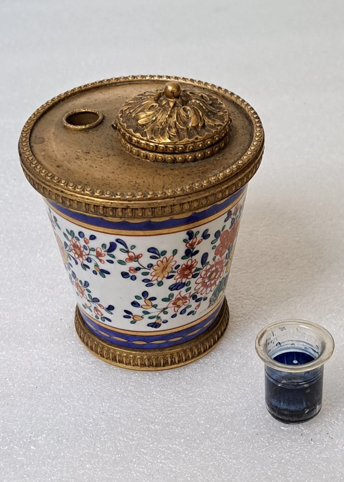 Samson was renowned for “honorable” imitations of rare porcelain patterns. This inkwell is a masterclass in their style:
