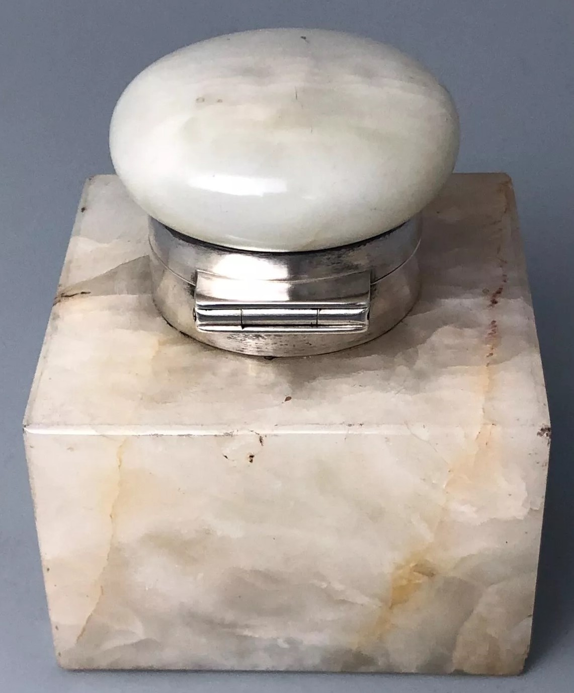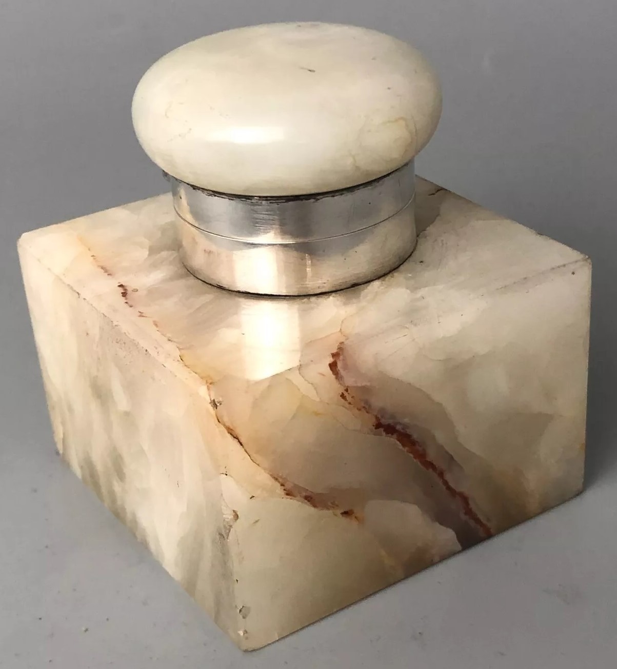 Onyx Inkwell with Silver Mount
