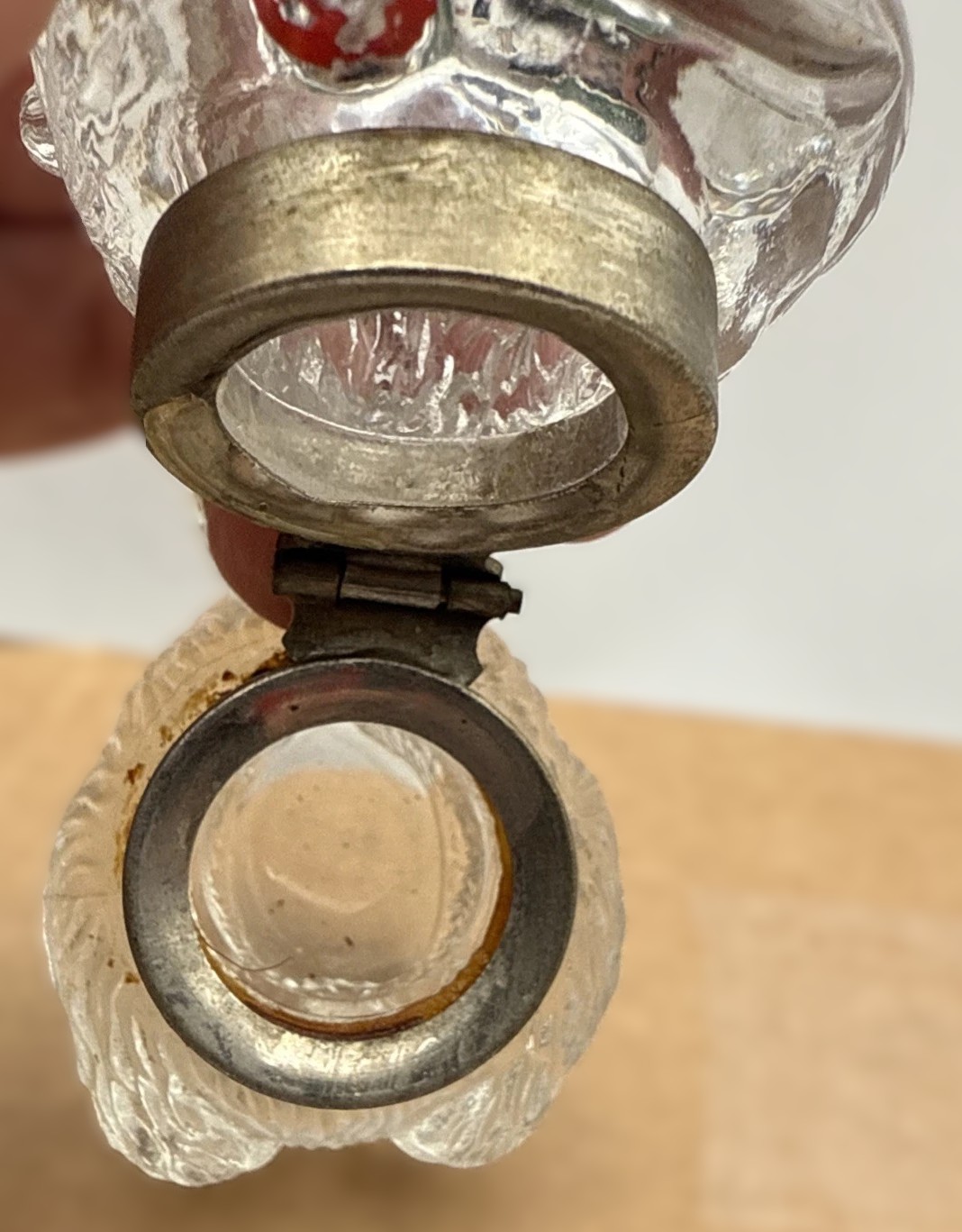 - Distinctive Detail: Notice the protruding red tongue, which is a hallmark of this specific design. This was typically achieved through “cold painting”—applying enamel or paint to the glass surface after it had cooled.