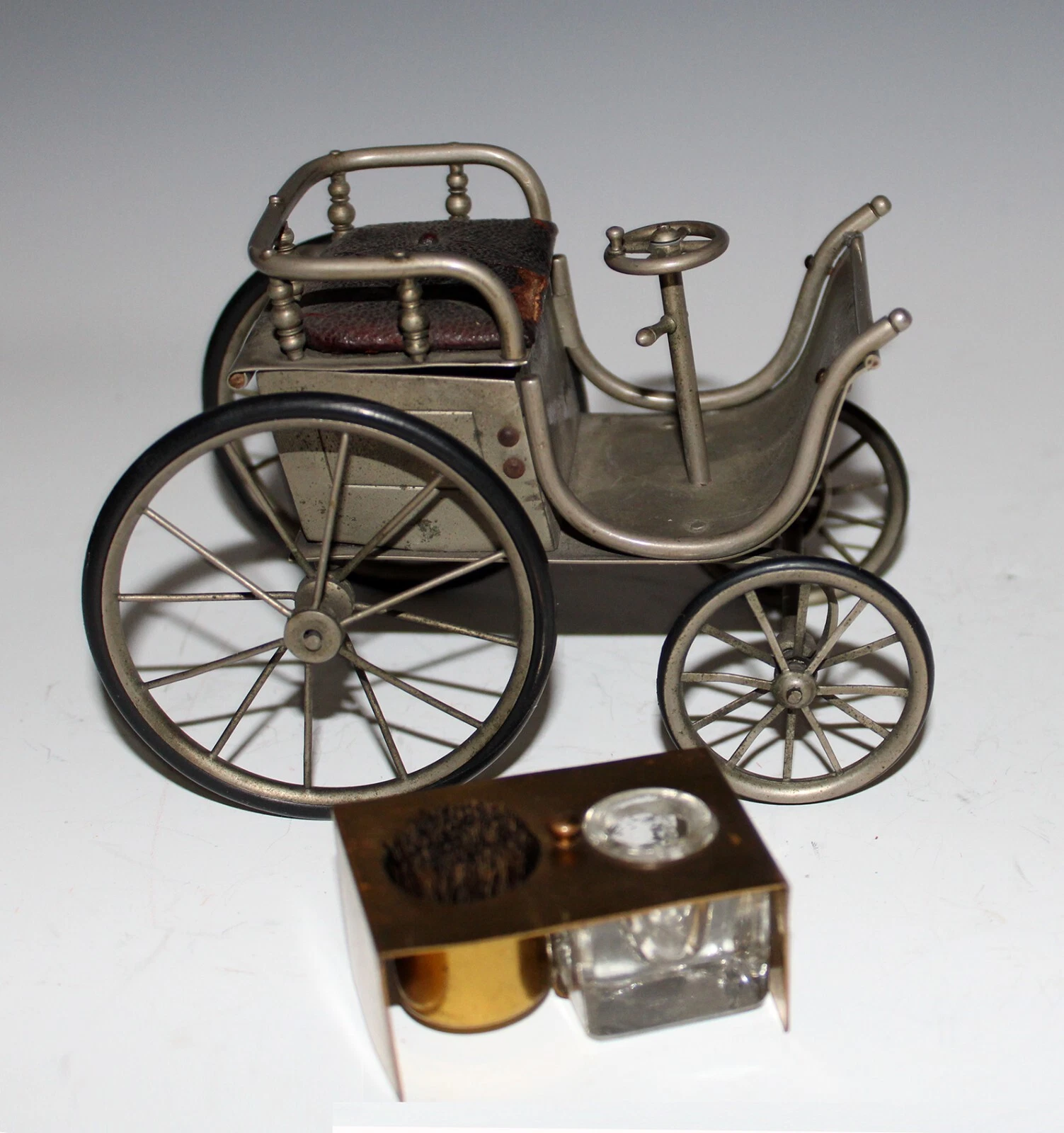 The form accurately mimics the design of an early open-carriage automobile with a distinct single bench seat: