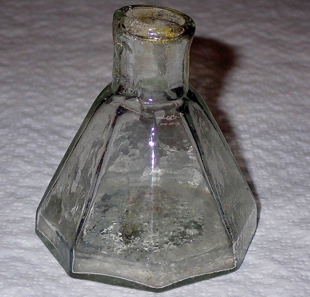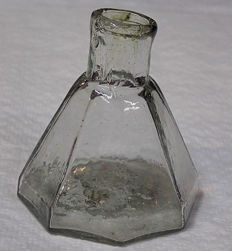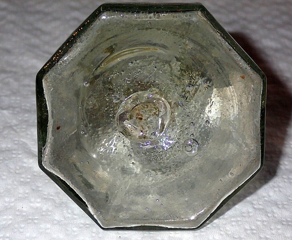 An eight-sided umbrella ink bottle with open pontil is in excellent condition with no chips, dings, or cracks.