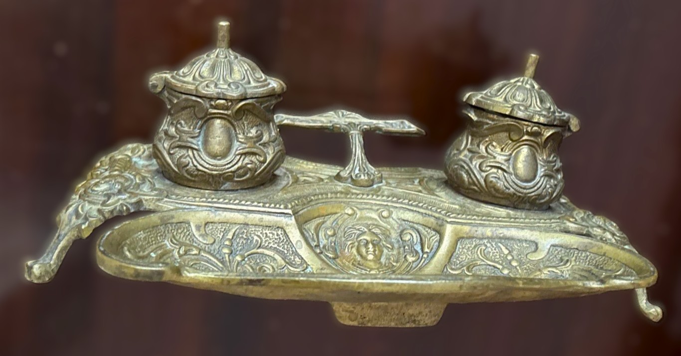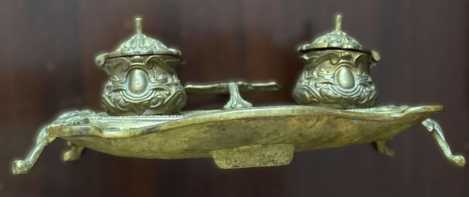 Ornate Brass Double Inkstand