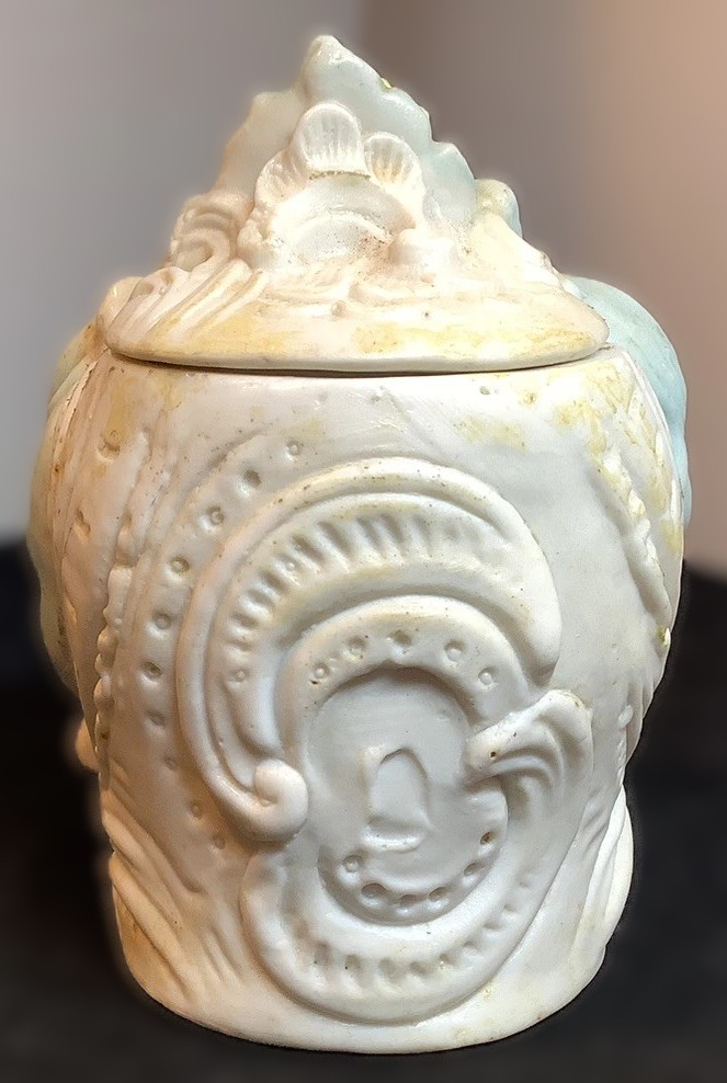 - Material: It is crafted from porcelain bisque (unglazed porcelain), which gives the piece a soft, matte texture.