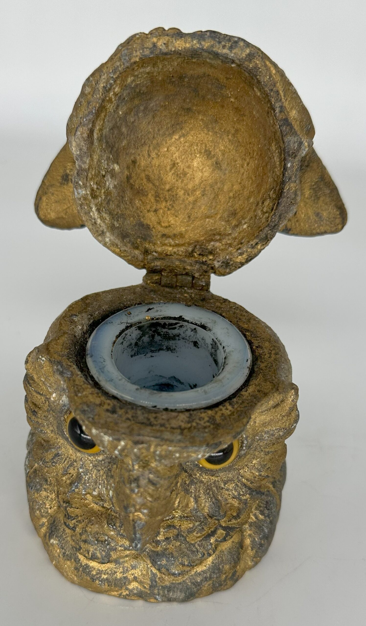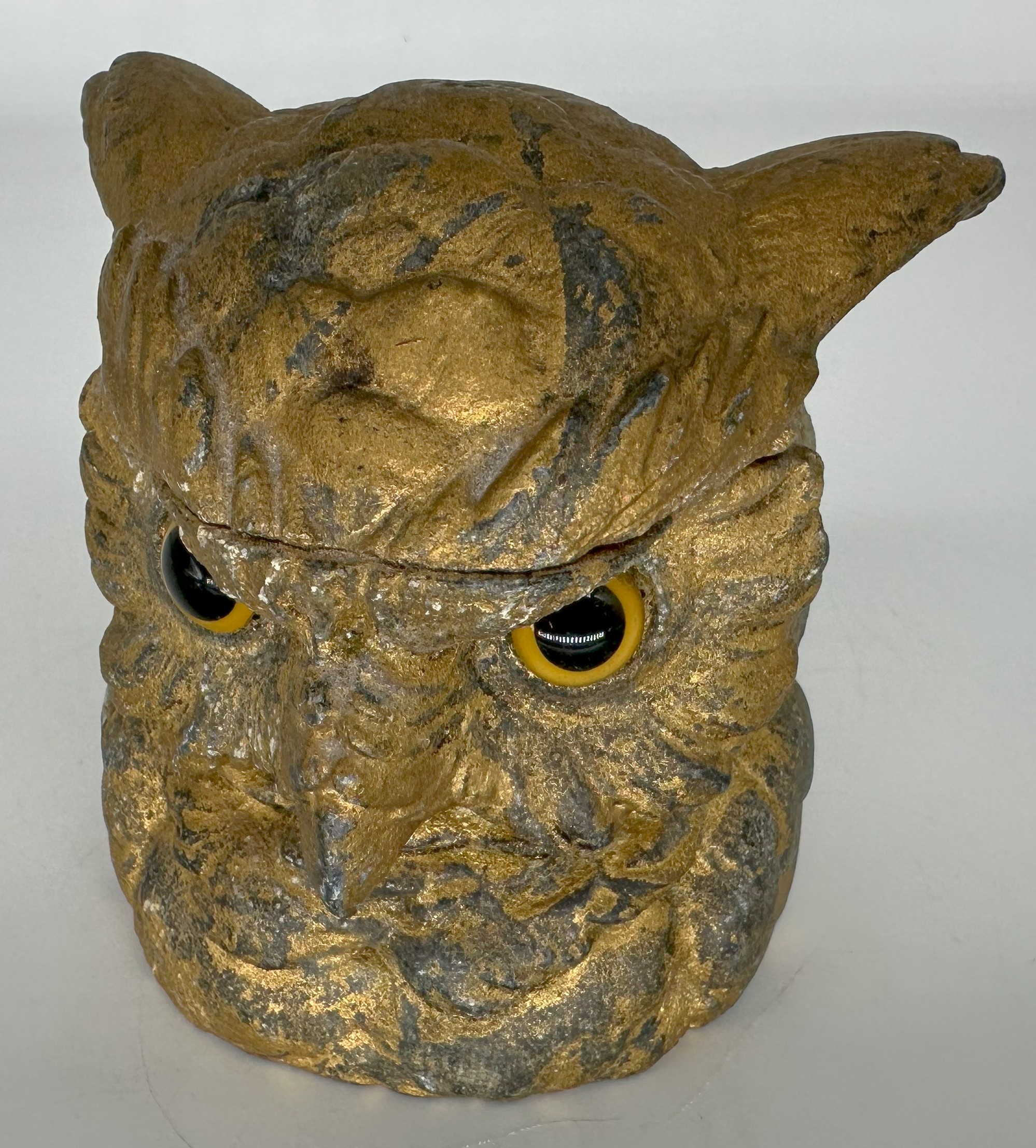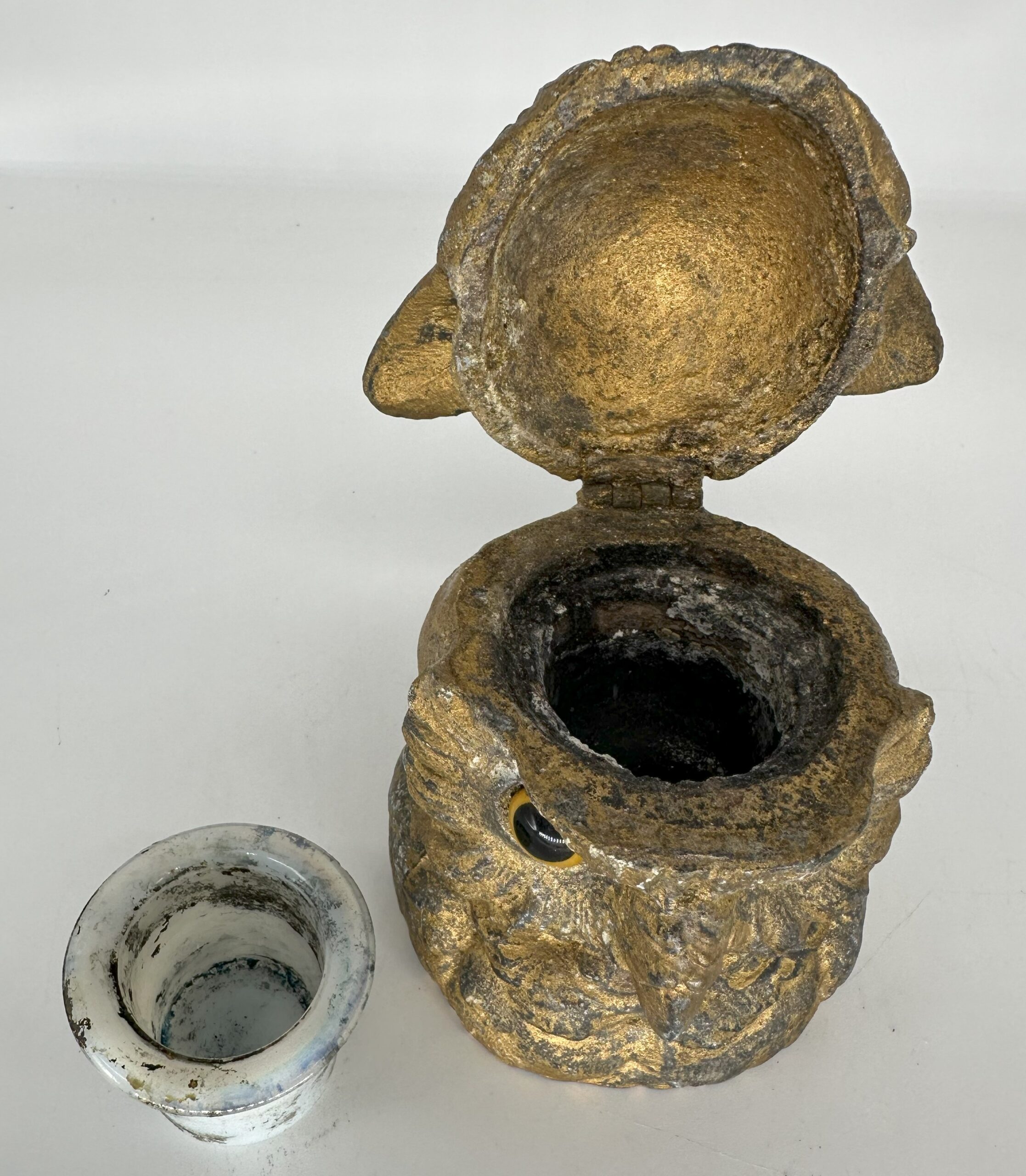 - Owl’s Head: The inkwell is shaped like an owl’s head, with prominent brow ridges, a beak, and ear tufts.