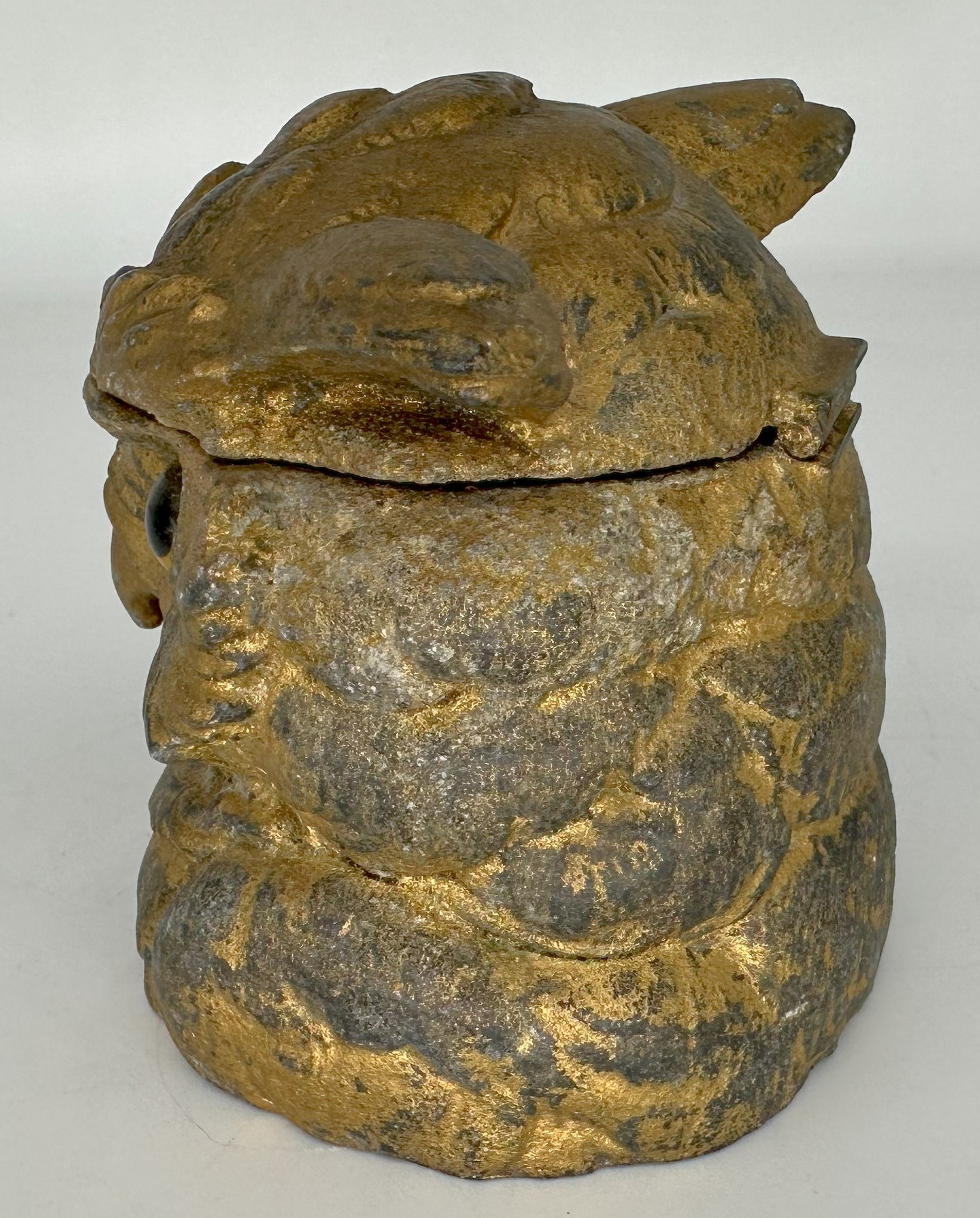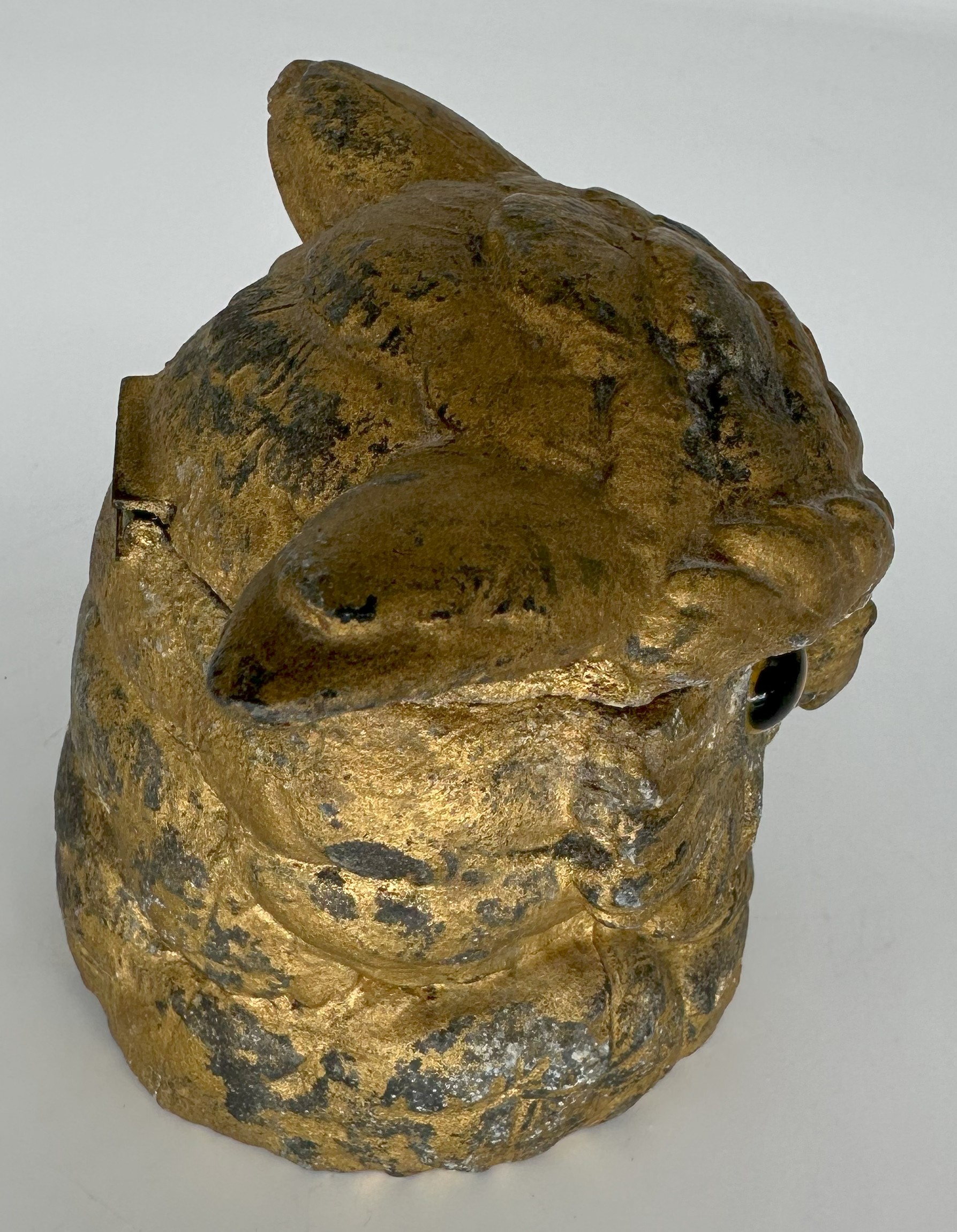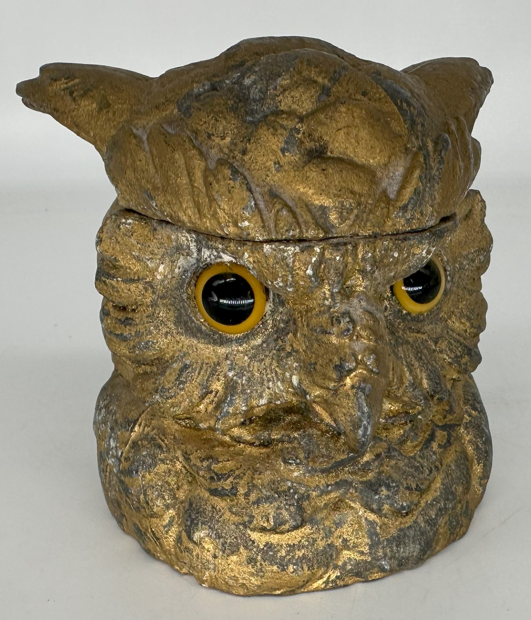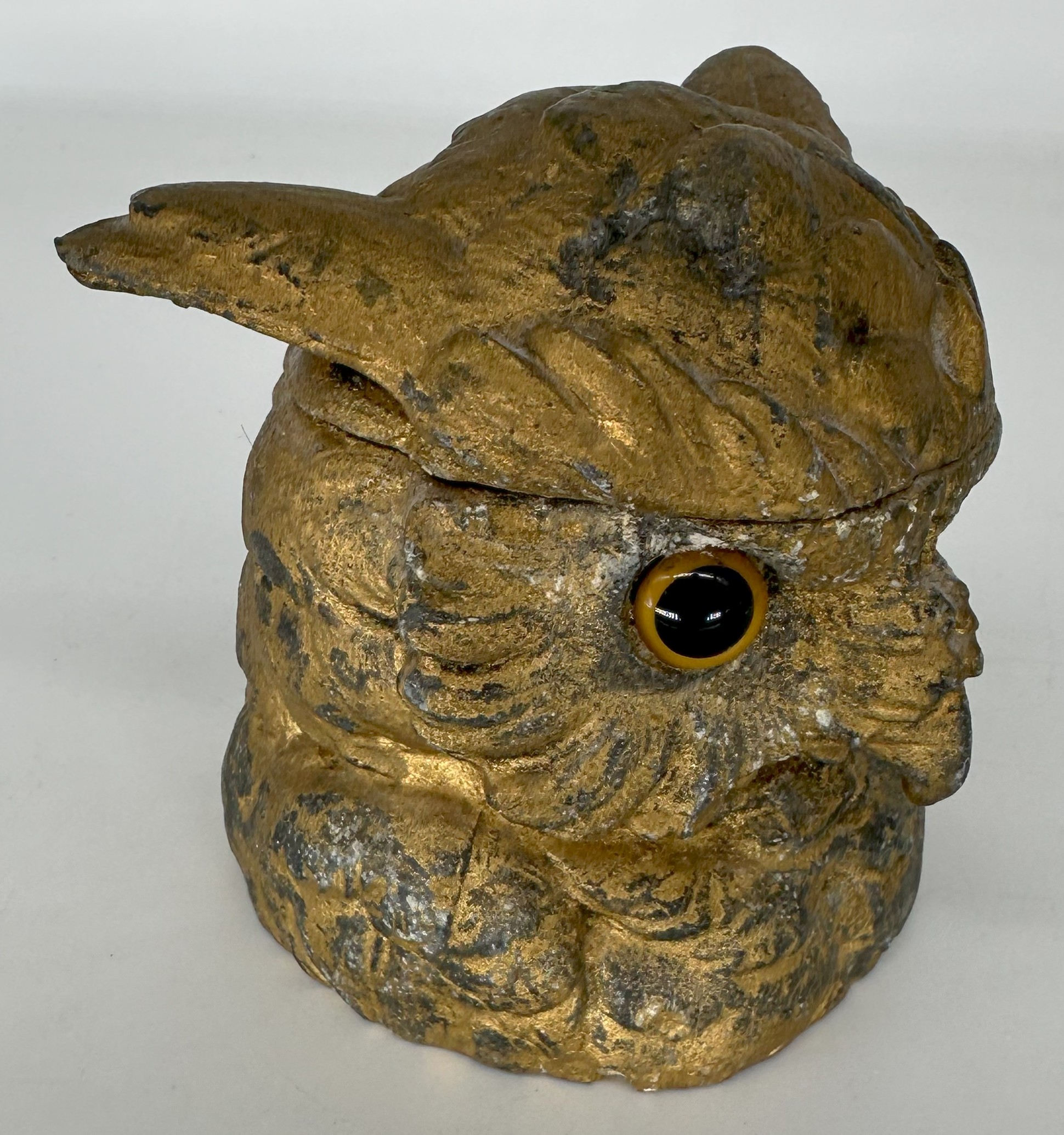- Owl’s Head: The inkwell is shaped like an owl’s head, with prominent brow ridges, a beak, and ear tufts.