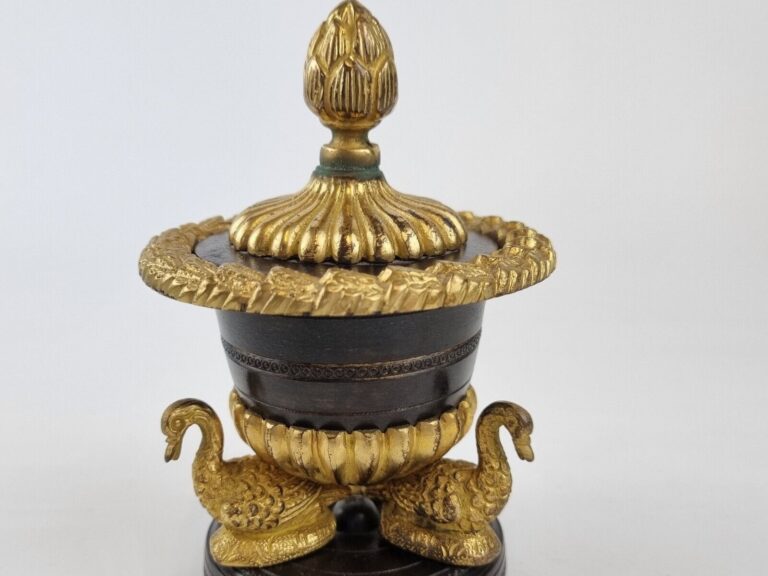 Gilt Bronze Inkwell Supported by Swans