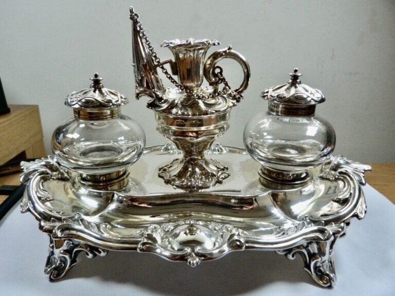 Palais Royal BLUE OPALINE Double Inkstand with Thermometer