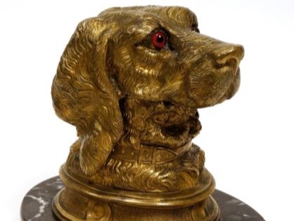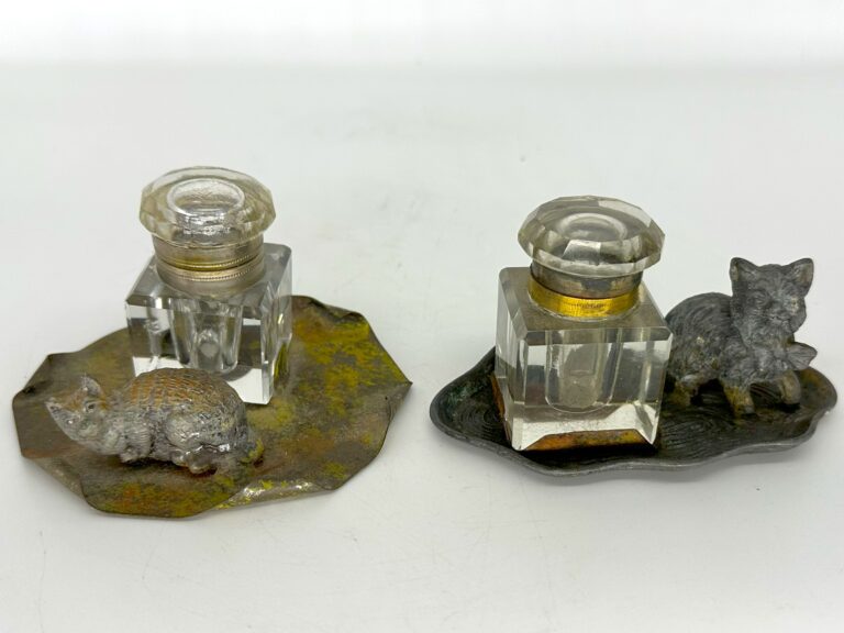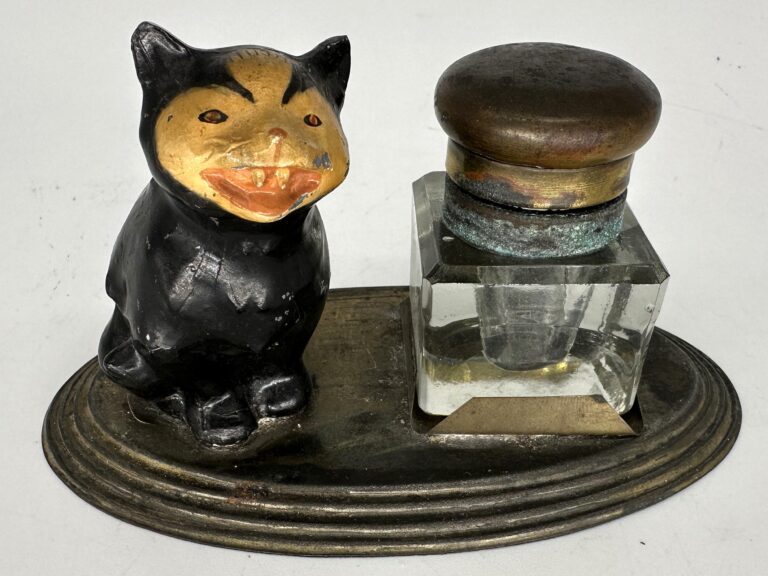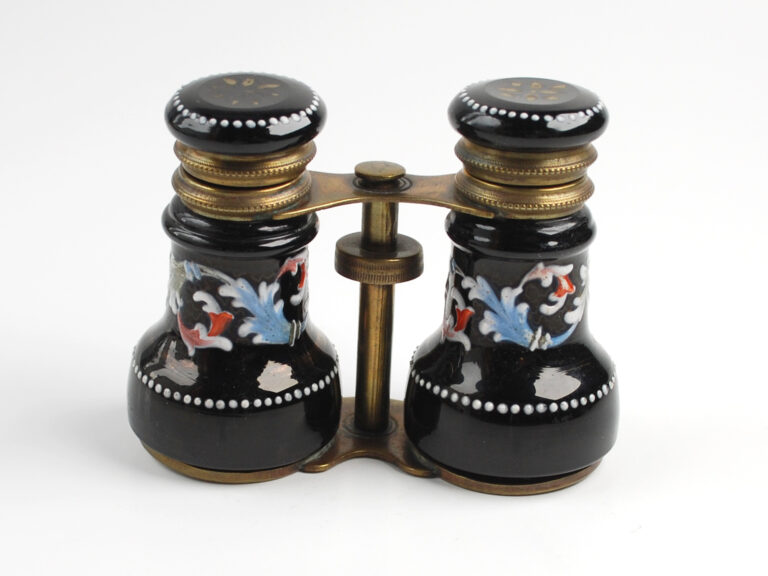 Figural Glass Double Inkwell, Black Opera Glass Shape