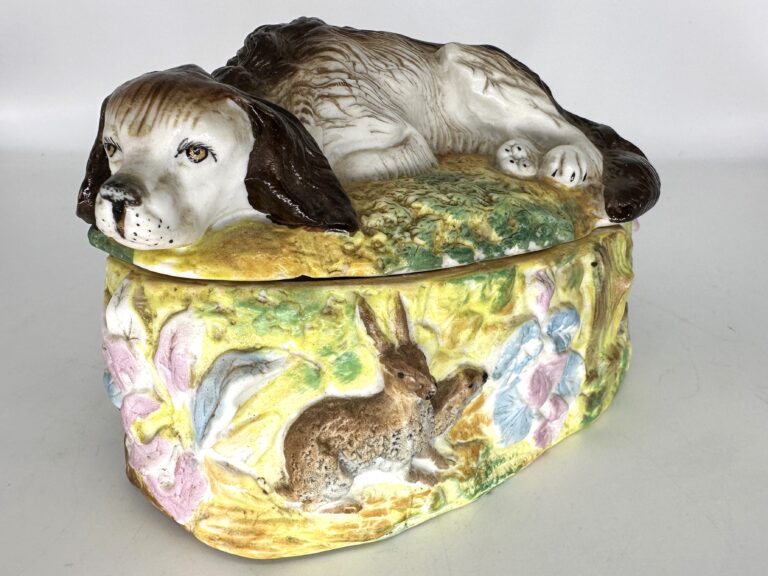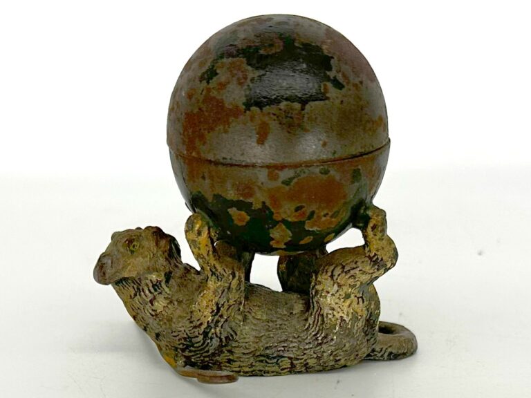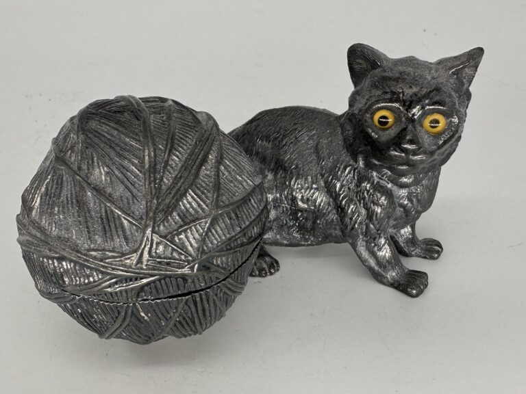 Cut Glass Inkwell, Six sided, Sapphire Blue with White Enameling