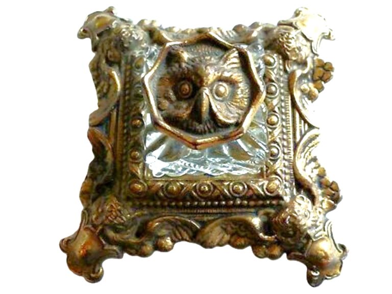 Cast Metal Owl Inkstand