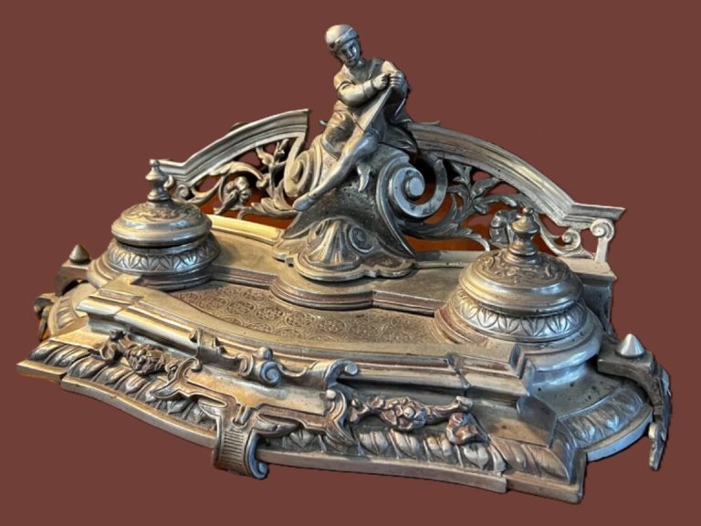 French “Teakettle” Inkwell in a Gilt Bronze Holder