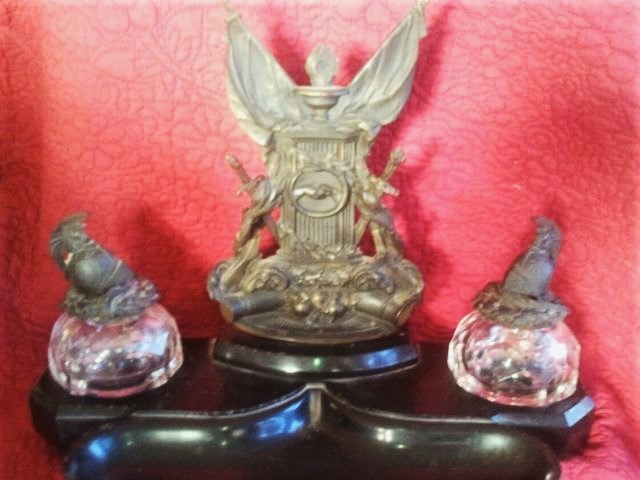 Figural Glass Double Inkwell, Black Opera Glass Shape
