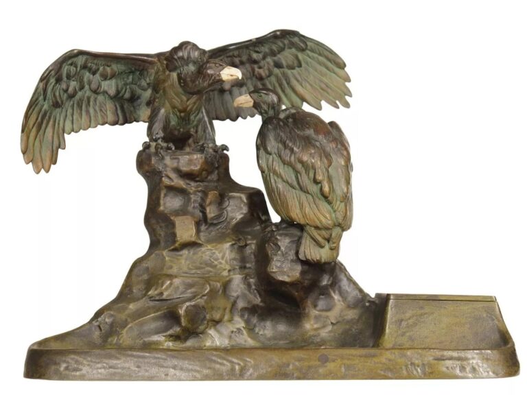 Cut Glass and Silver Inkwell with Folding Pocket Watch Lid