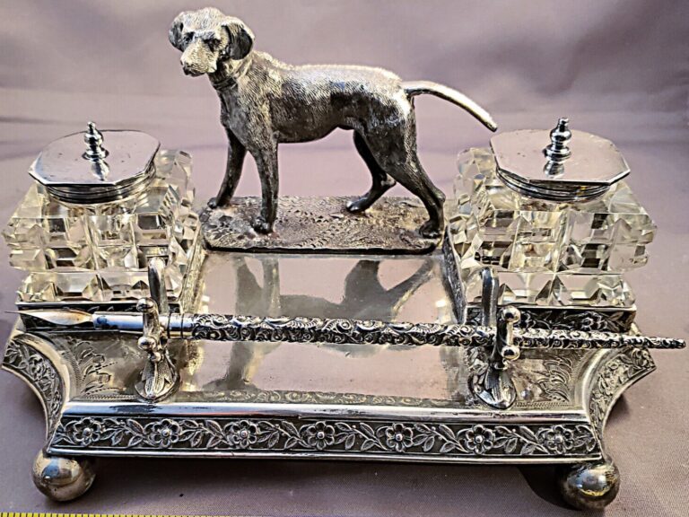 Hunting Dog Silverplate Inkstand