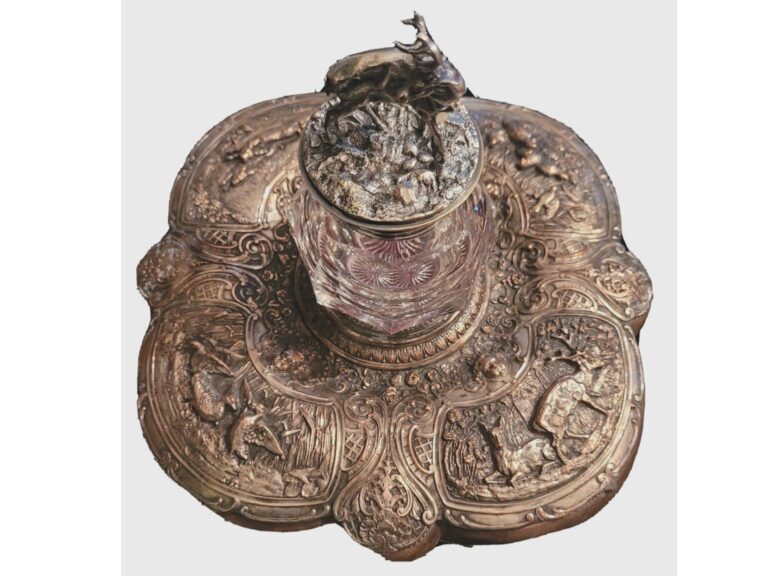 Silverplate Hunting Scenes Inkstand