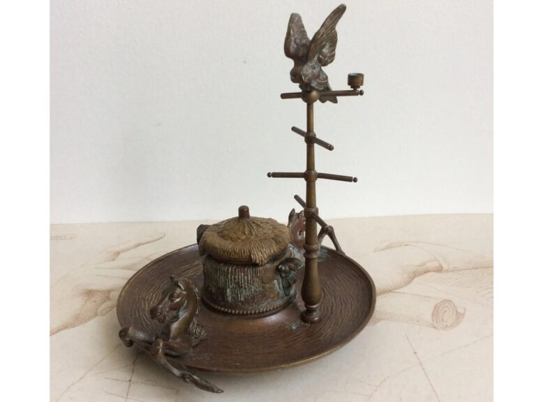 Bronze Inkstand with a Parrot and Horse Heads