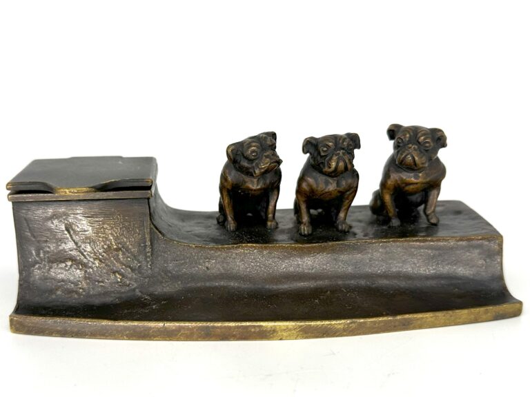 Three Bulldogs Bronze Inkstand
