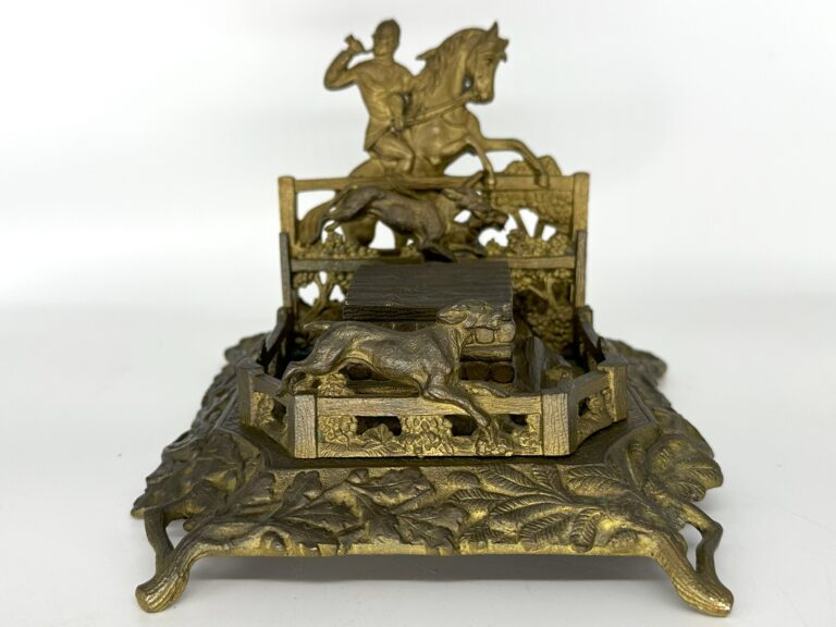 English Hunt Scene Inkstand with Letter Holder