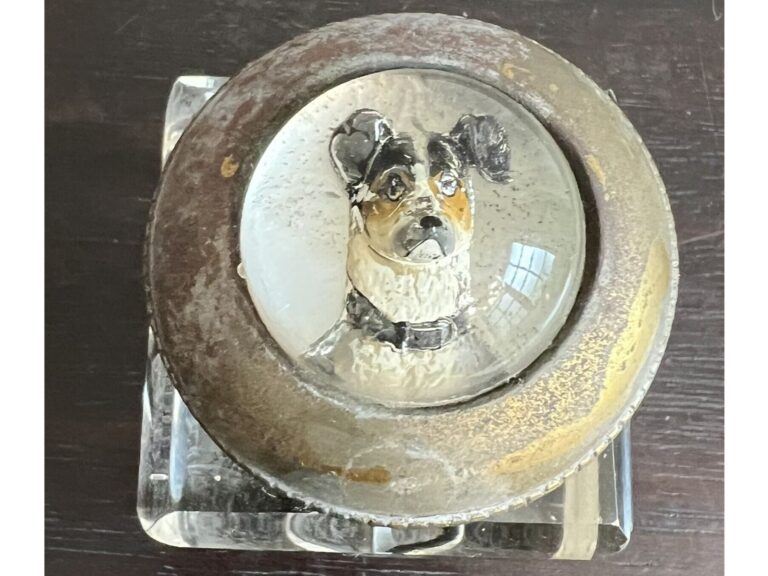 Crystal Inkwell Overlaid with Art Nouveau Bronze Casing