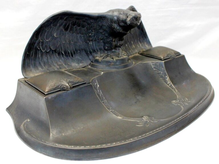 Silver Inkstand with Blue Milk Glass Inkwell / Sander