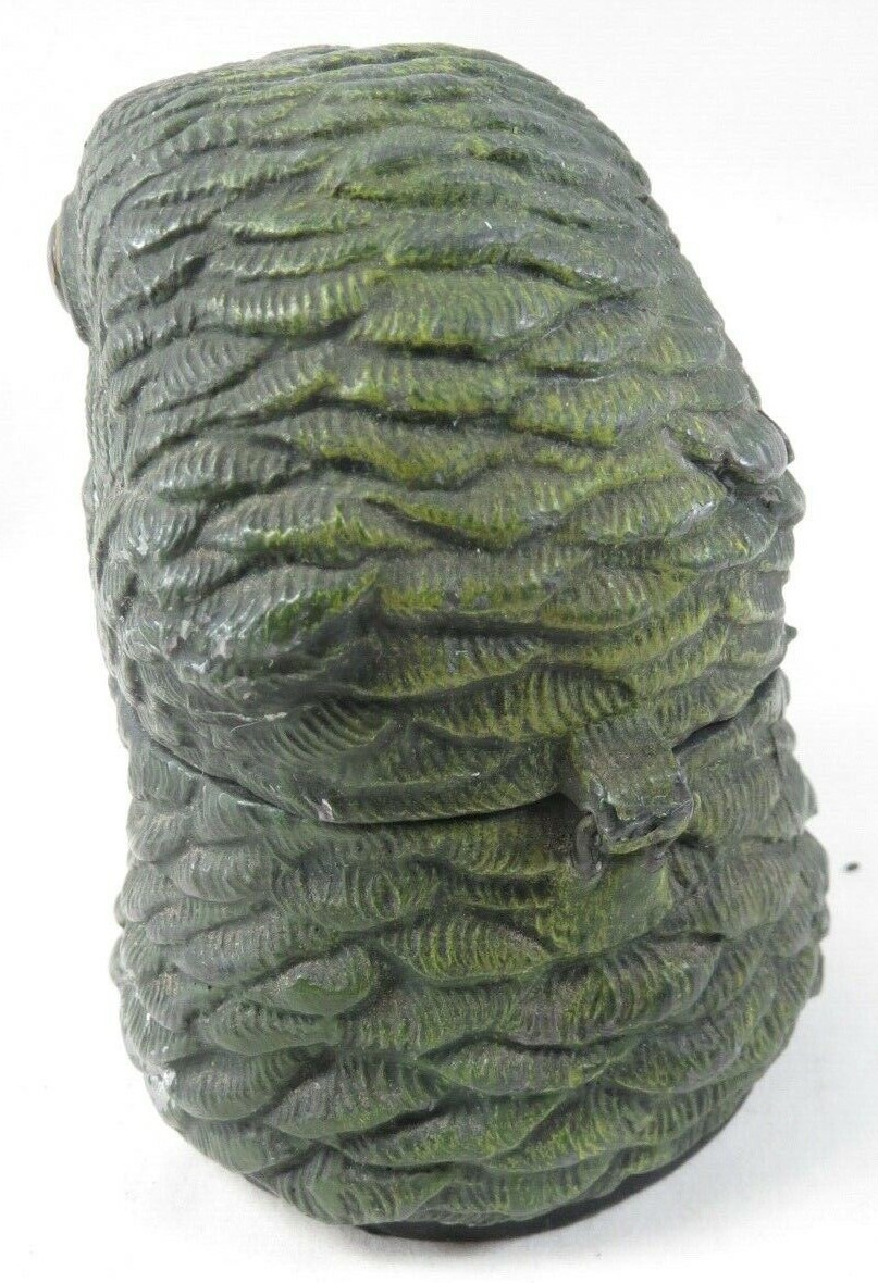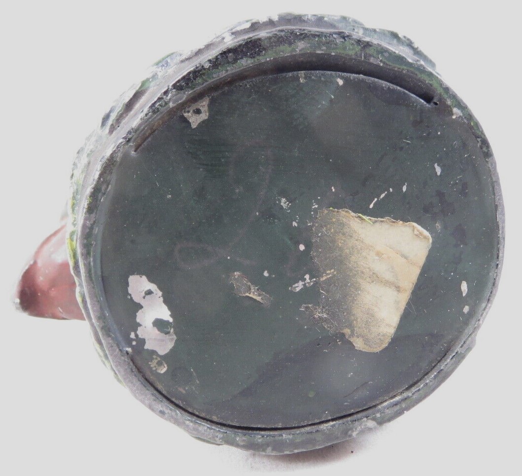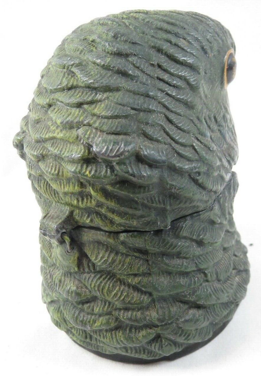 Painted white metal, the parrot’s head is hinged in the back and opens at the neck to access the inkwell.