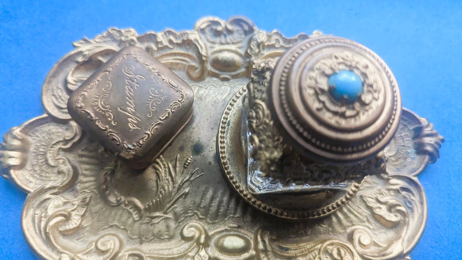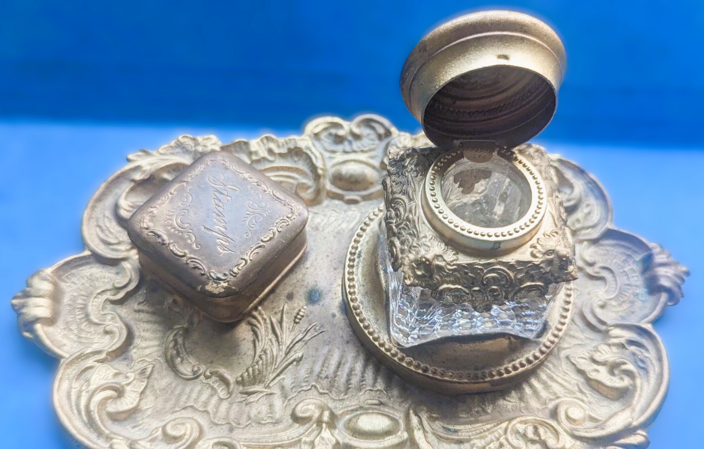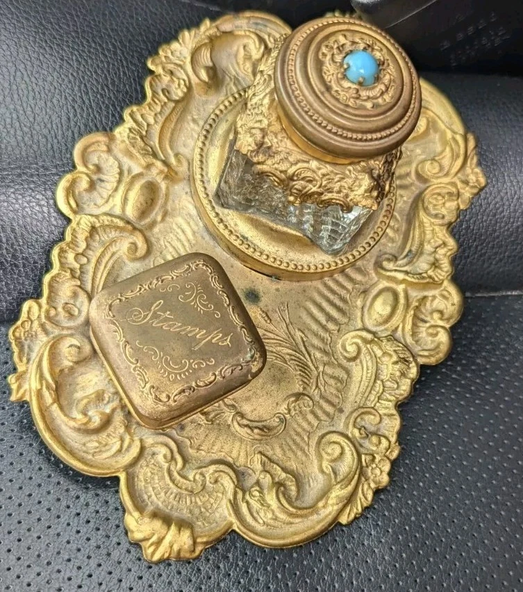 Patented Brass Inkstand & Stamp Box