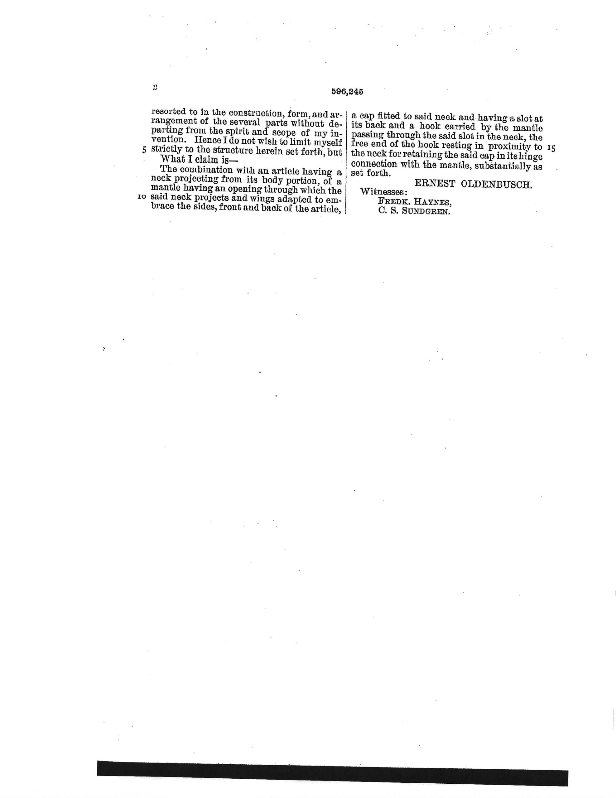 - Patent Number 596,245