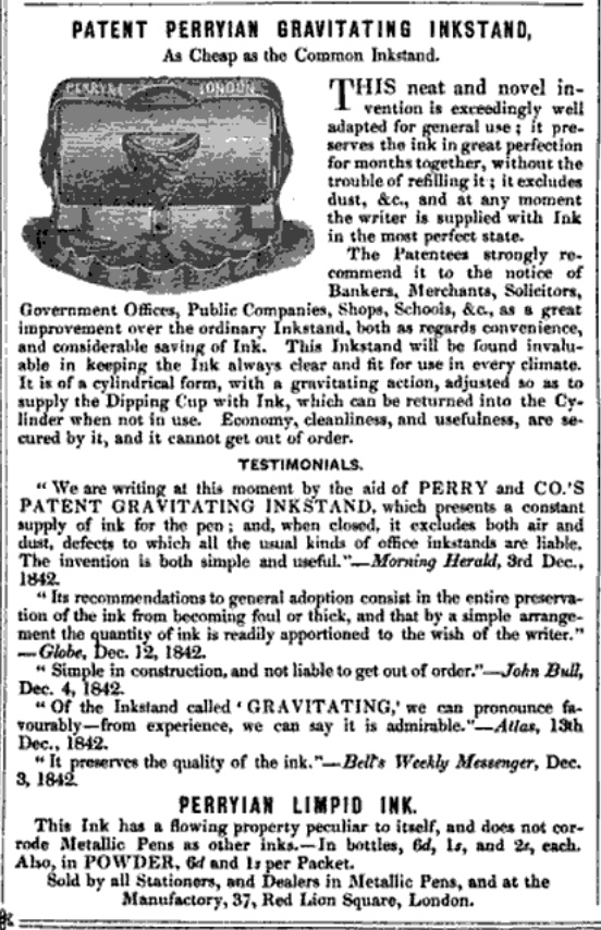 Link to more information about Perryian Gravitating Inkstands: Yore Write!: The Patent Perryian Gravitating Inkstand