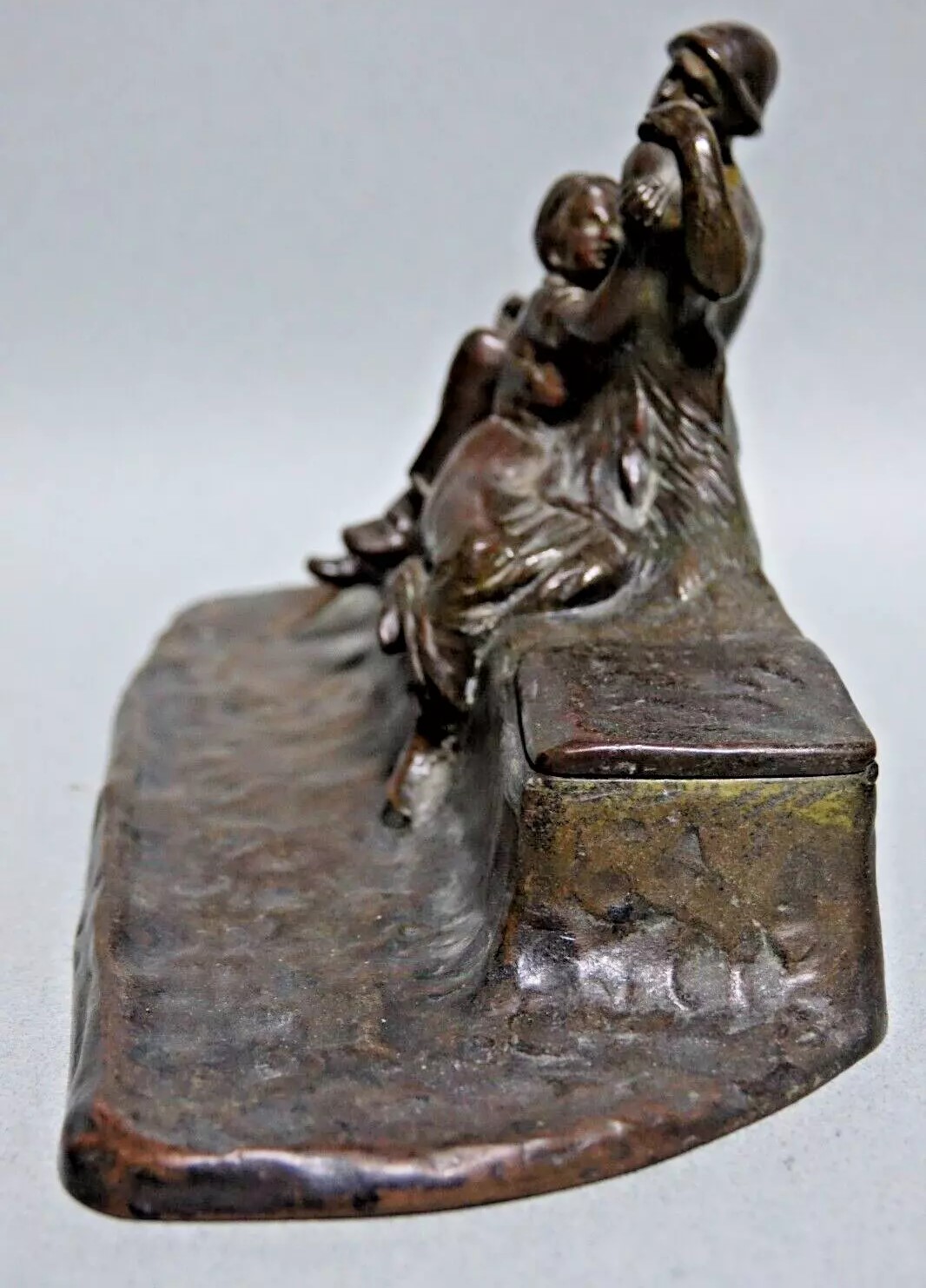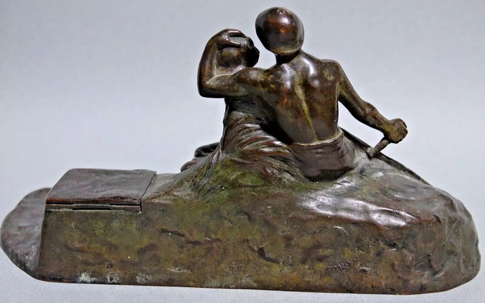 Peter Tereszczuk was an Austrian-Ukrainian sculptor known for his bronze Art Nouveau figurines. He created most of his works between 1895 and 1925 in Vienna. His pieces often combine functionality with artistic storytelling, as seen in this inkstand.