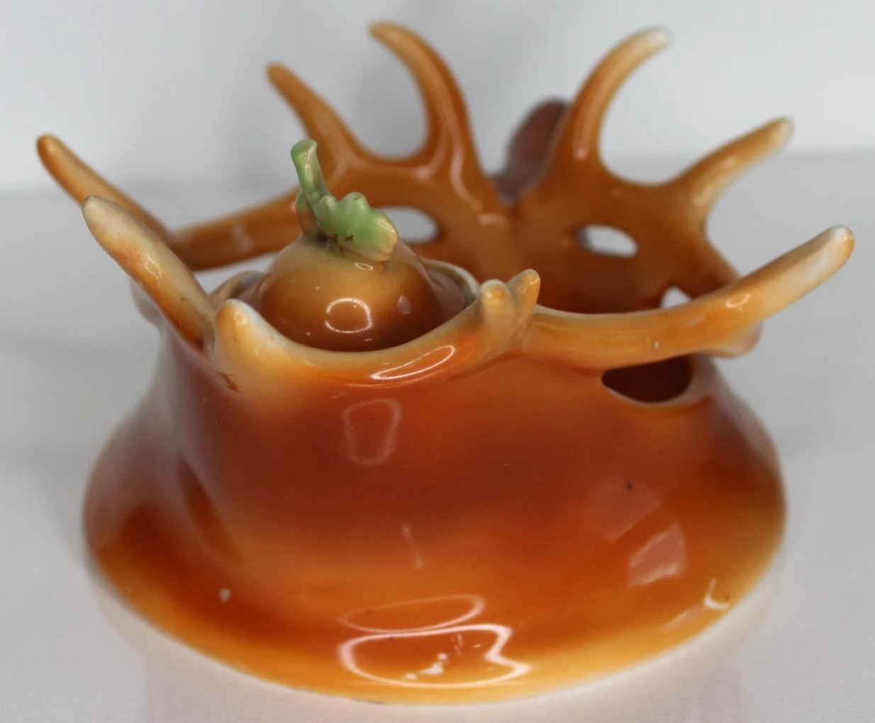 The factory was particularly celebrated for its novelty pieces, often shaped as people, animals, and objects like vegetables or fruits. These items, designed to be both decorative and functional, were incredibly popular on the international market, especially in the United States, from the late 19th through the early 20th centuries.