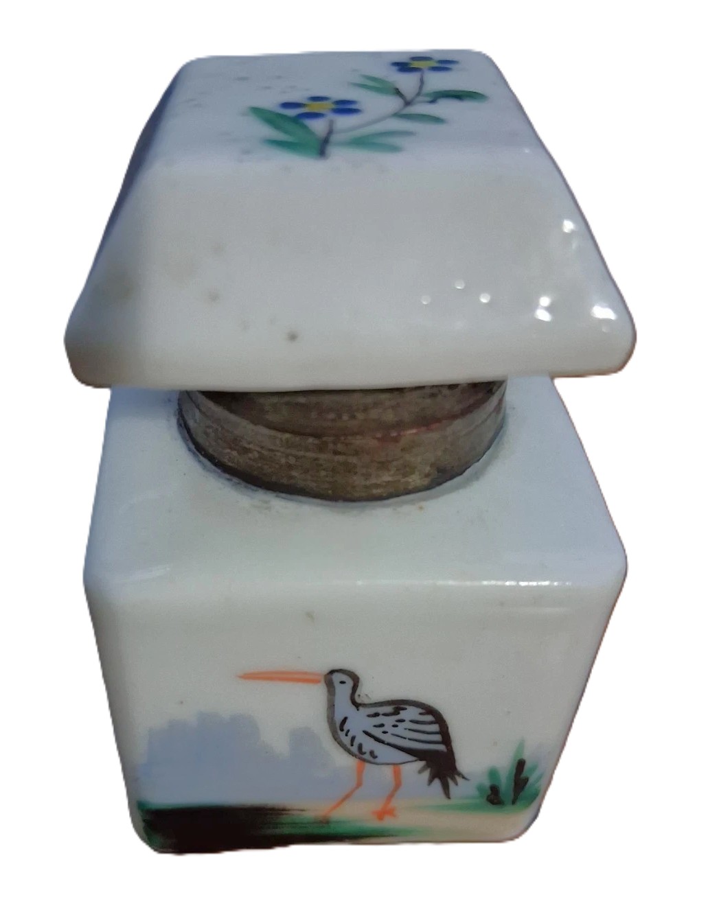 This porcelain inkwell dates from the late 19th to early 20th century (circa 1890–1920).