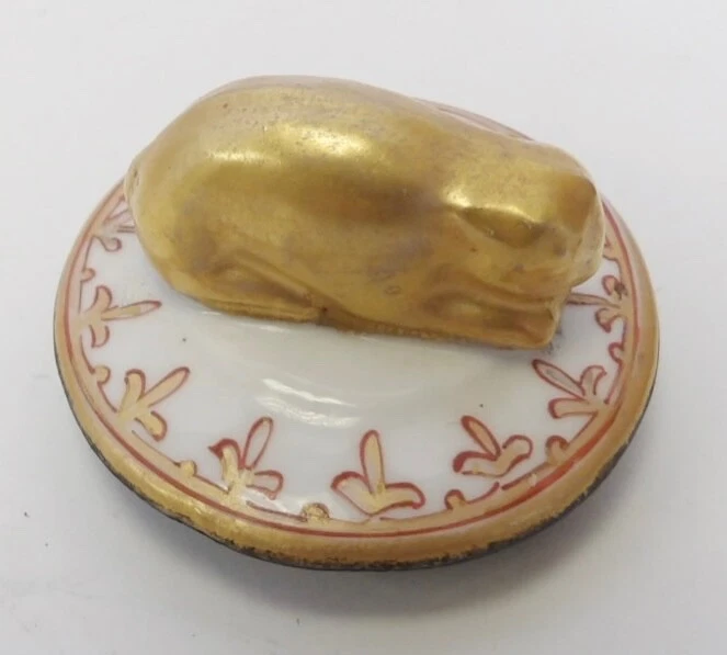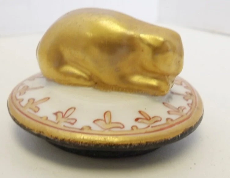- The Lid & Finial: The top section of the rooster’s back has a removable lift-off lid. The finial is a rabbit (identifiable by its long ears and crouched posture), which serves as a handle for the lid.