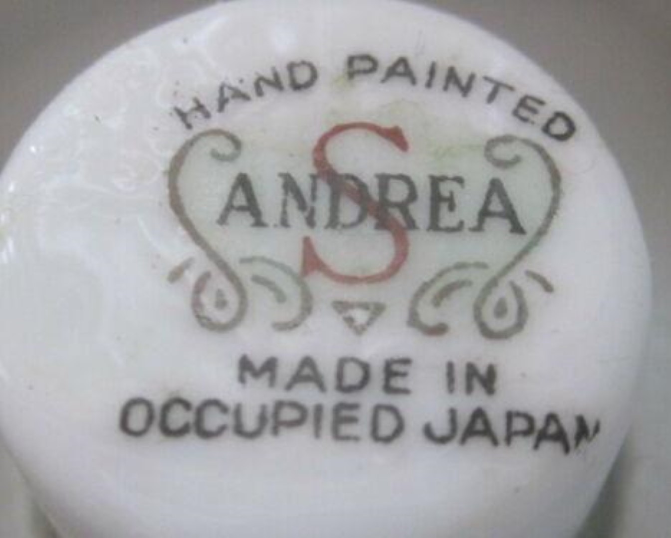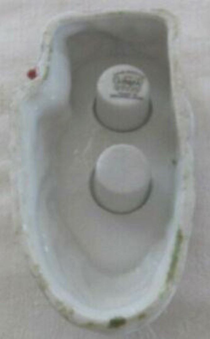 A smaller, less detailed version of this inkstand was produced in Occupied Japan (1947-1952) and is also pictured here.