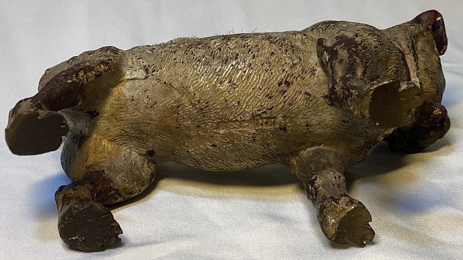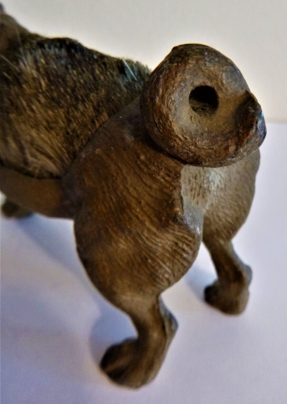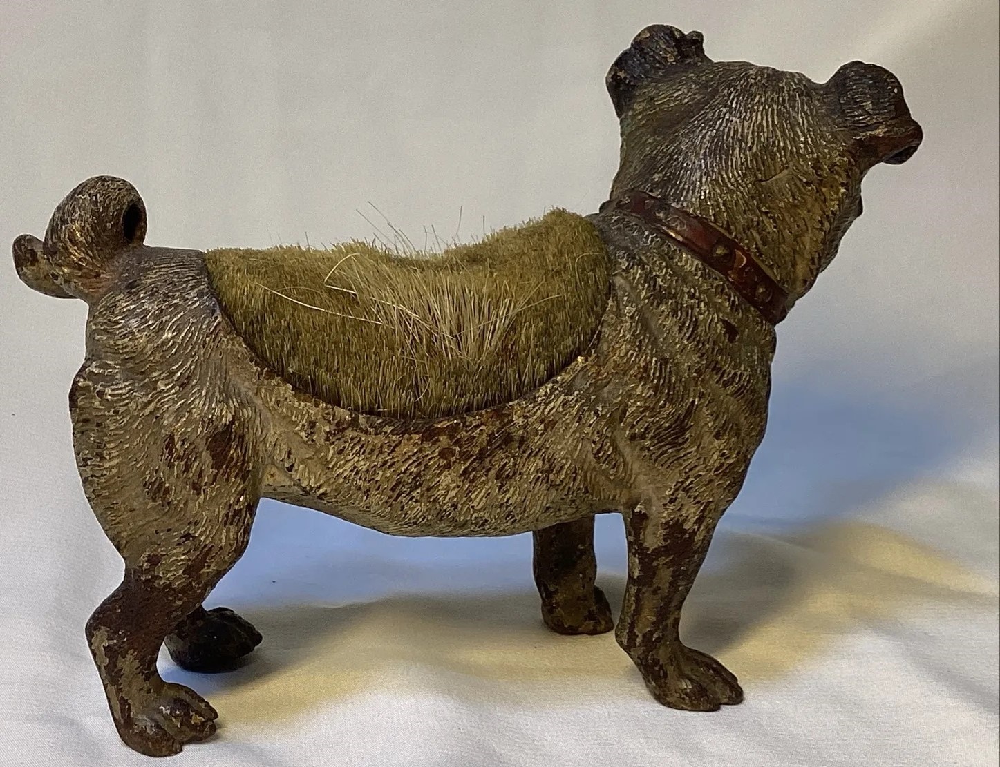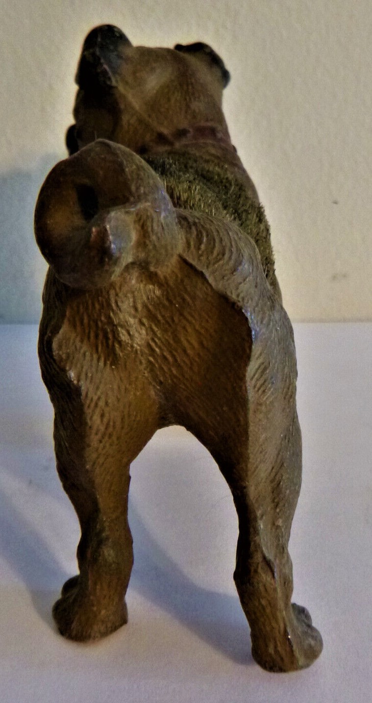 Cold-painted metal pen wipe in the form of a pug dog. Two examples shown. The second is marked “Geschutzt”.