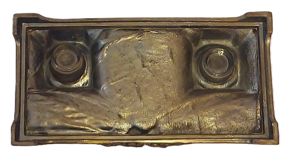 Based on the style and the manufacturer’s history, this inkstand dates to the late 19th or early 20th century, specifically circa 1895–1910. This period saw a peak in the popularity of highly decorative, symbolic desk accessories before the rise of more streamlined Art Deco styles.