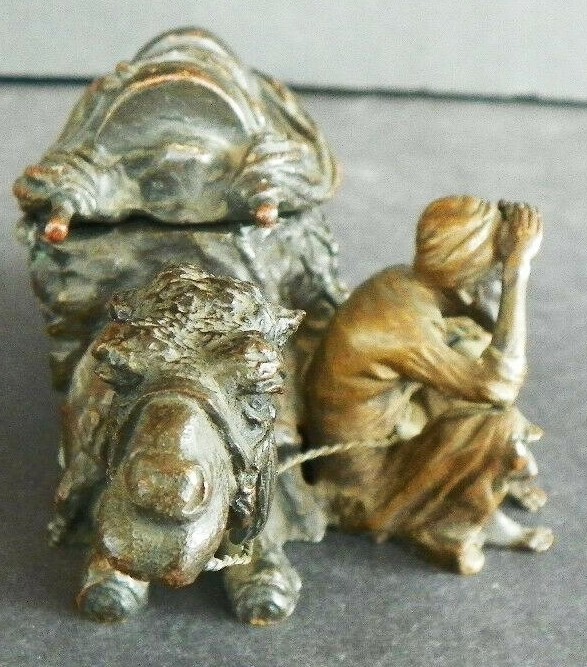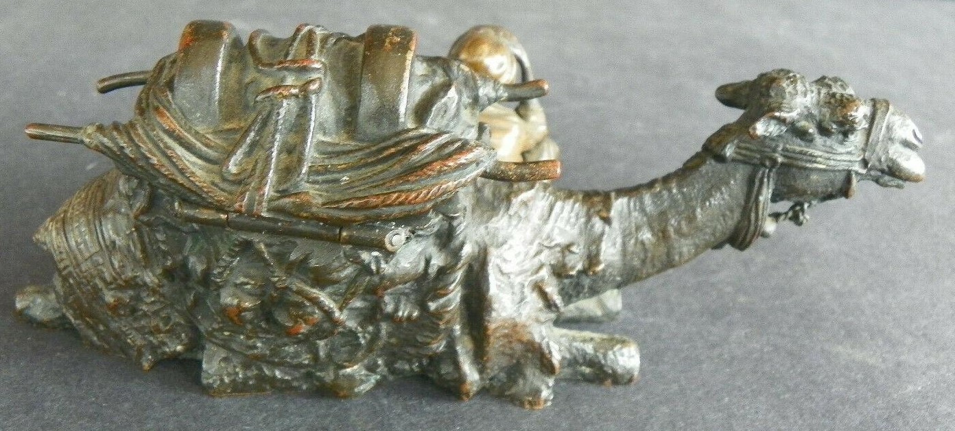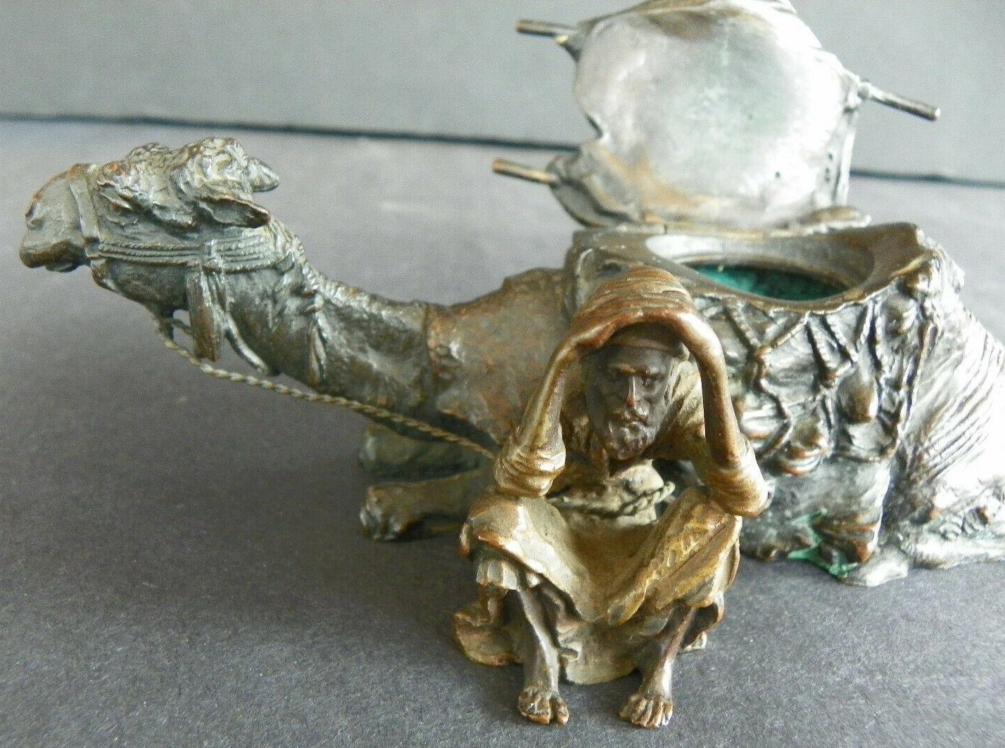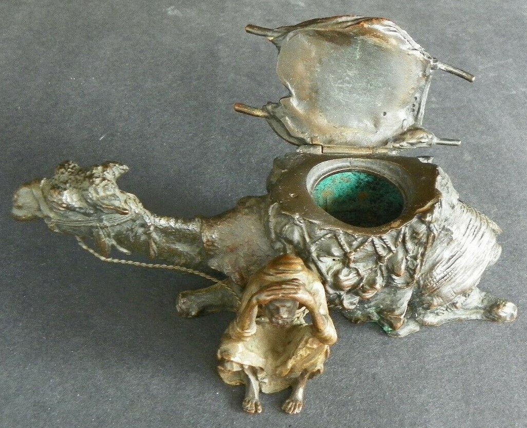 Detailed bronze inkwell featuring a Bedouin and his camel. (Missing glass insert)