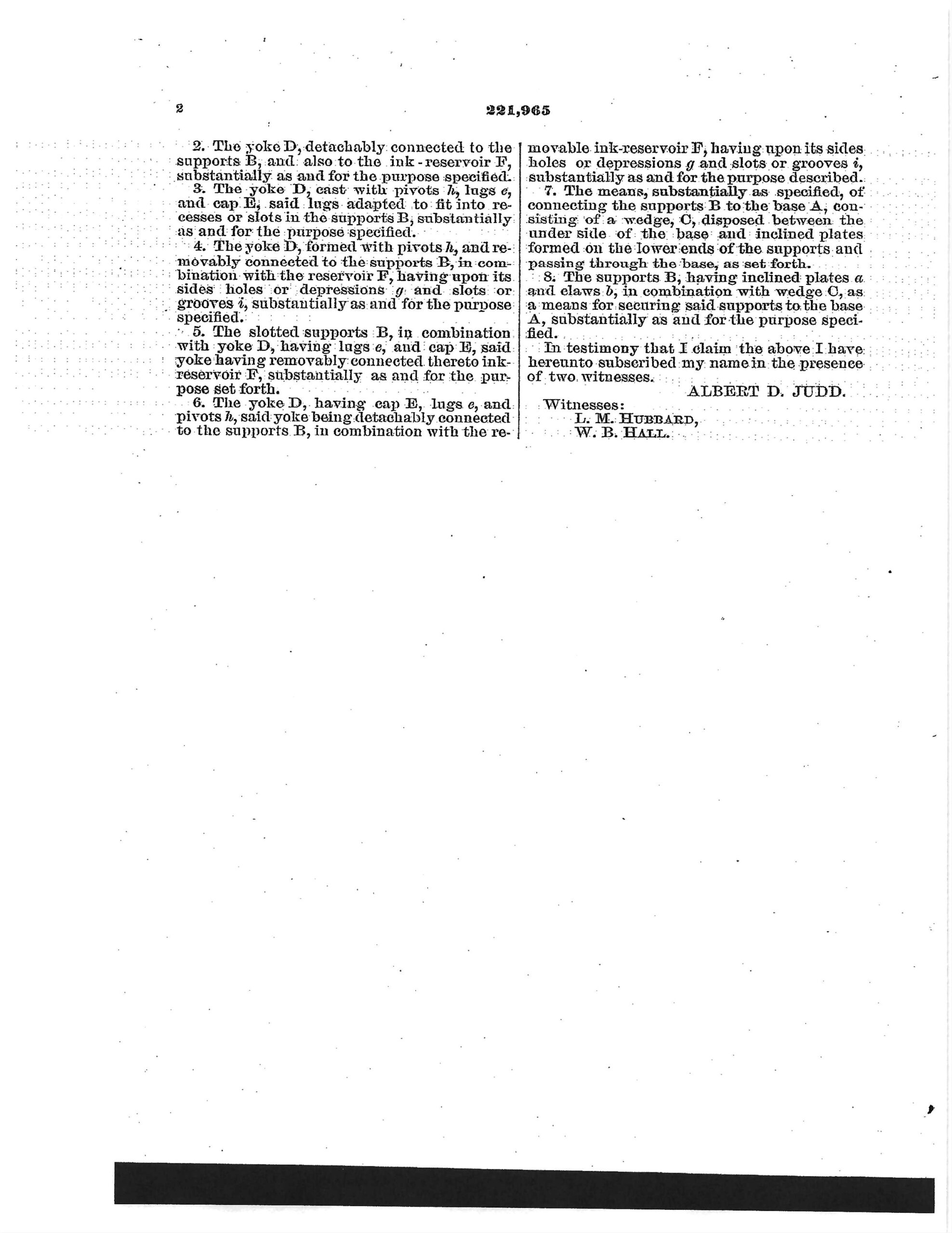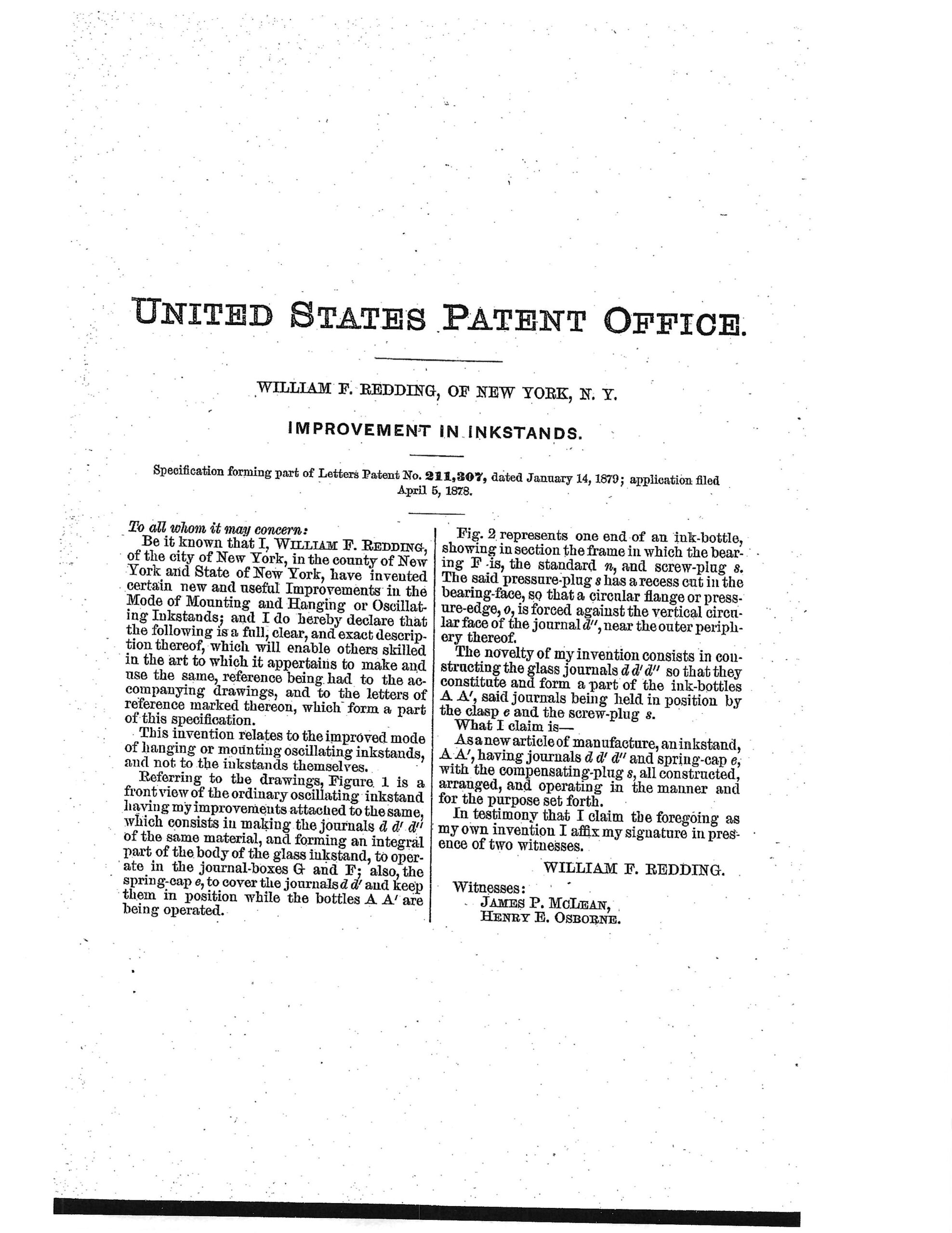 | Patent | Patent No. 211,307 (January 14, 1879) and Patent No. 221,965 (November 25, 1879) |