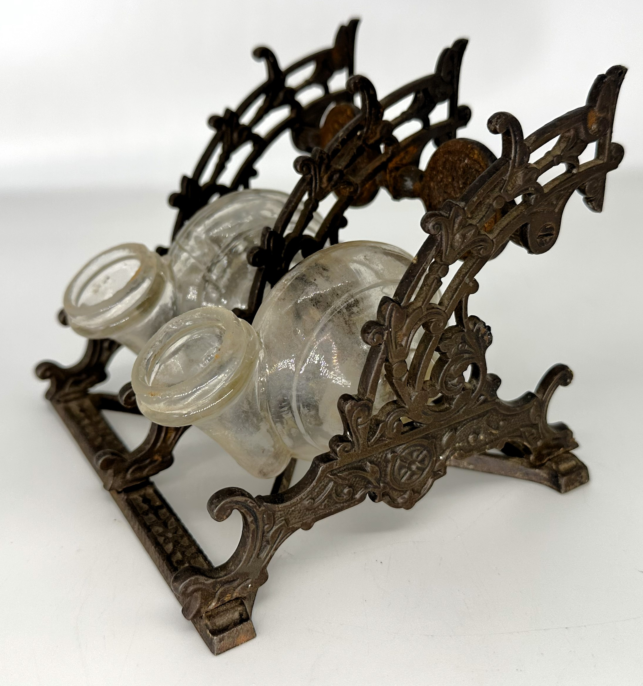 These revolving, “snail” inkstands (single and double) are examples of American desk engineering from the late 19th century. Manufactured by Wolcott Hull in Meriden, Connecticut, it reflects the city’s status as a major hub for silver and metalware production during the Industrial Revolution.