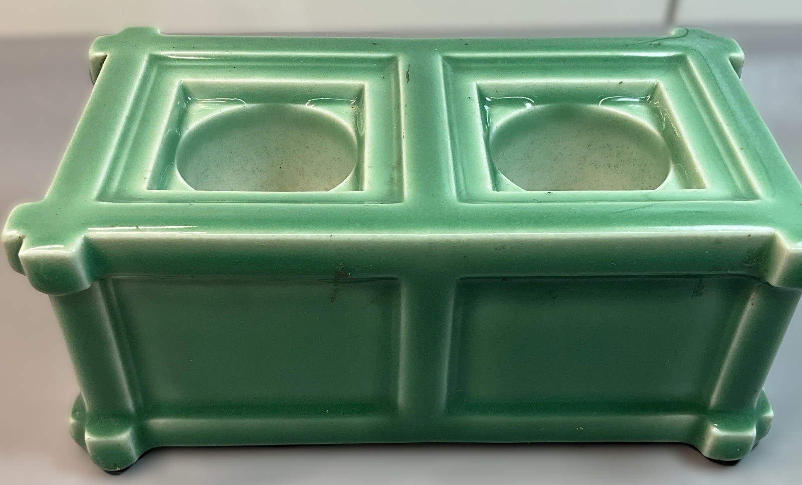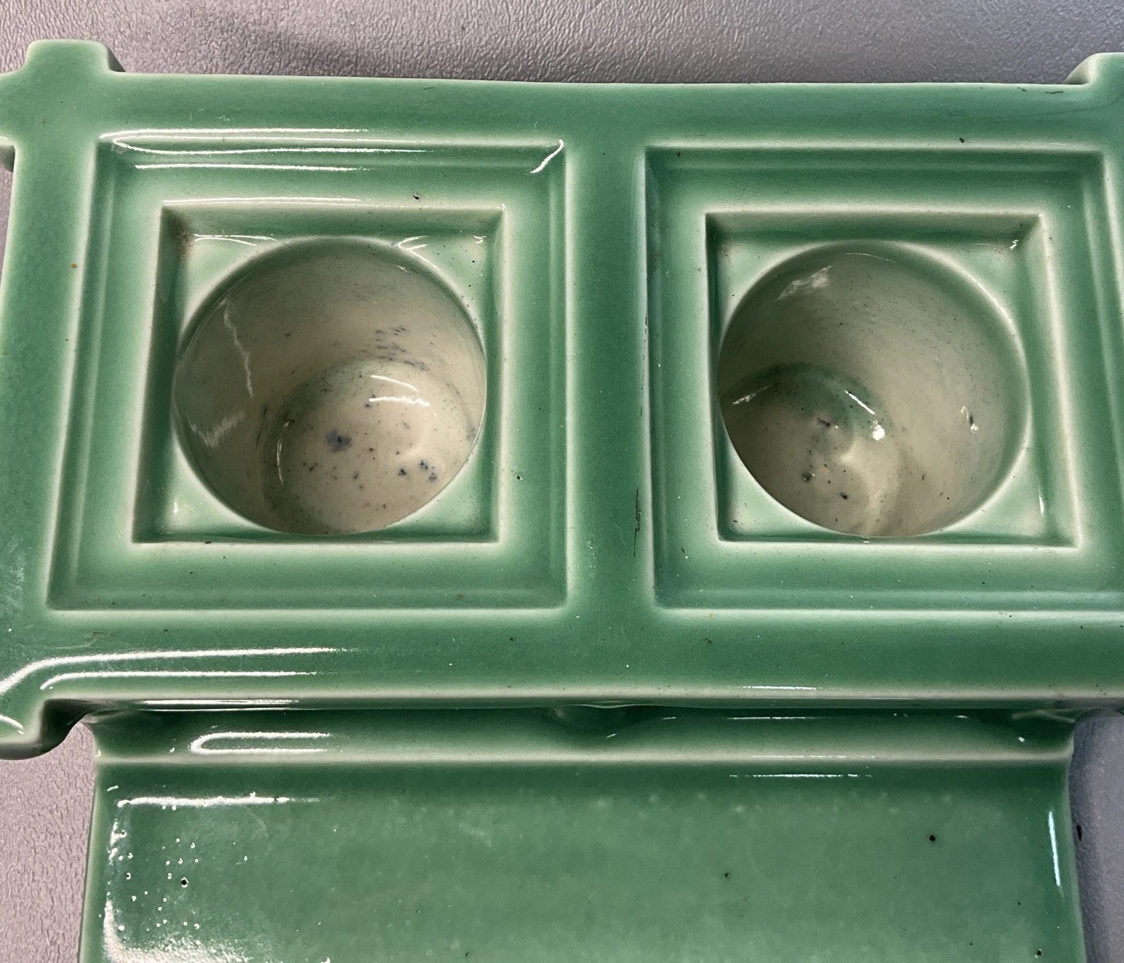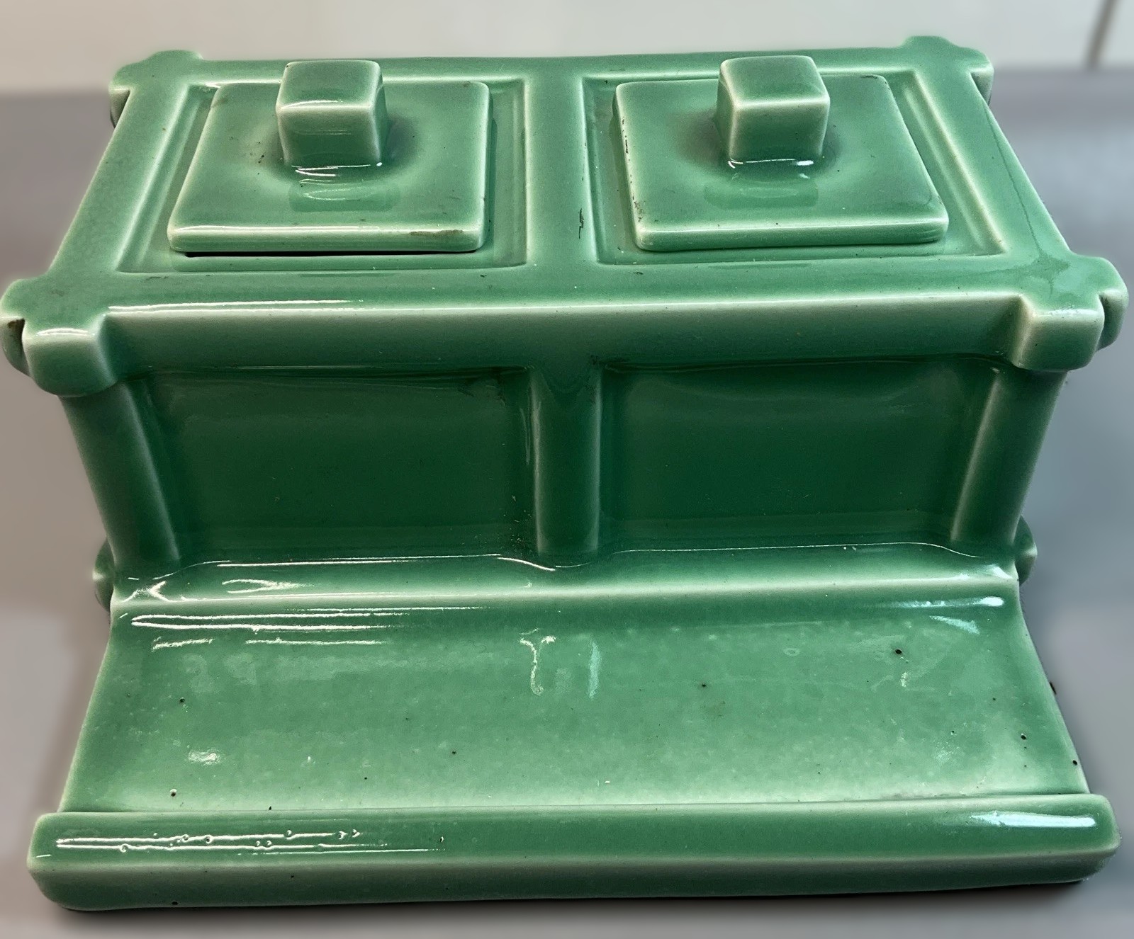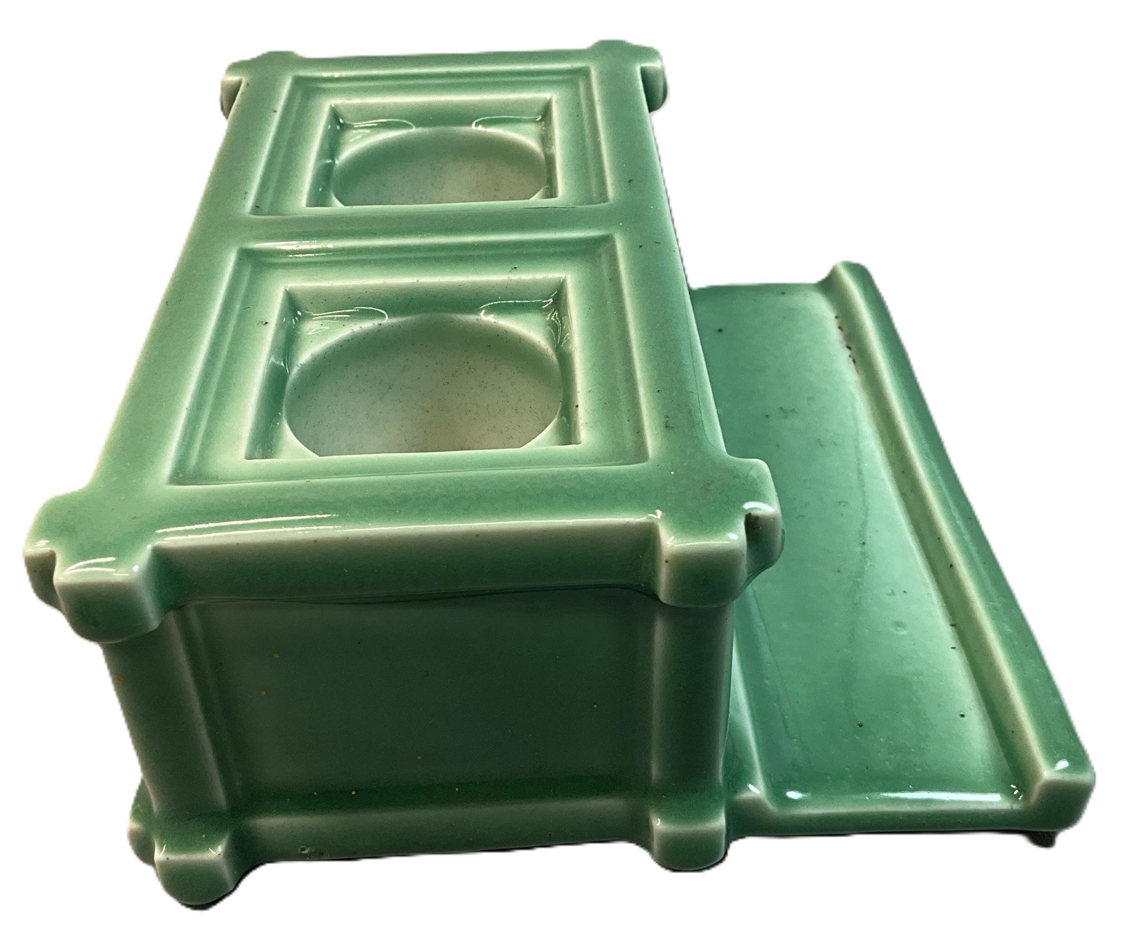This Rookwood Pottery double inkstand, produced in 1926, is a quintessential example of the company’s “Production Ware”—high-quality, mold-formed pieces designed to bring the studio’s artistic excellence to a broader market.