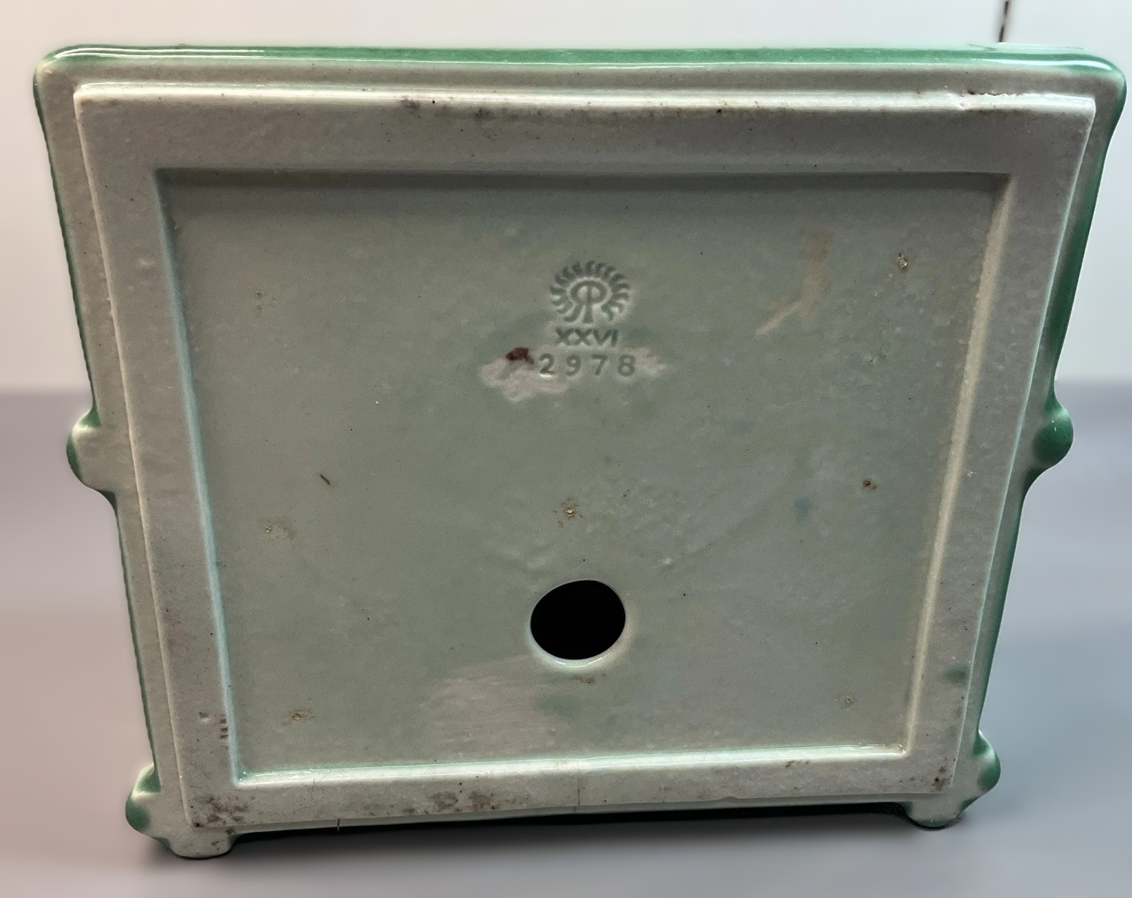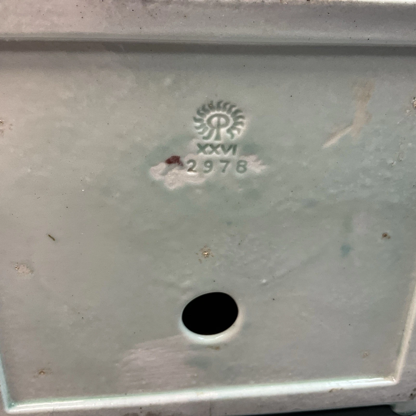 - The Markings: The underside bears the impressed Rookwood “RP” logo surmounted by 14 flames. Below this is the Roman numeral “XXVI”, which identifies the year of manufacture as 1926, and the model number “2978”.