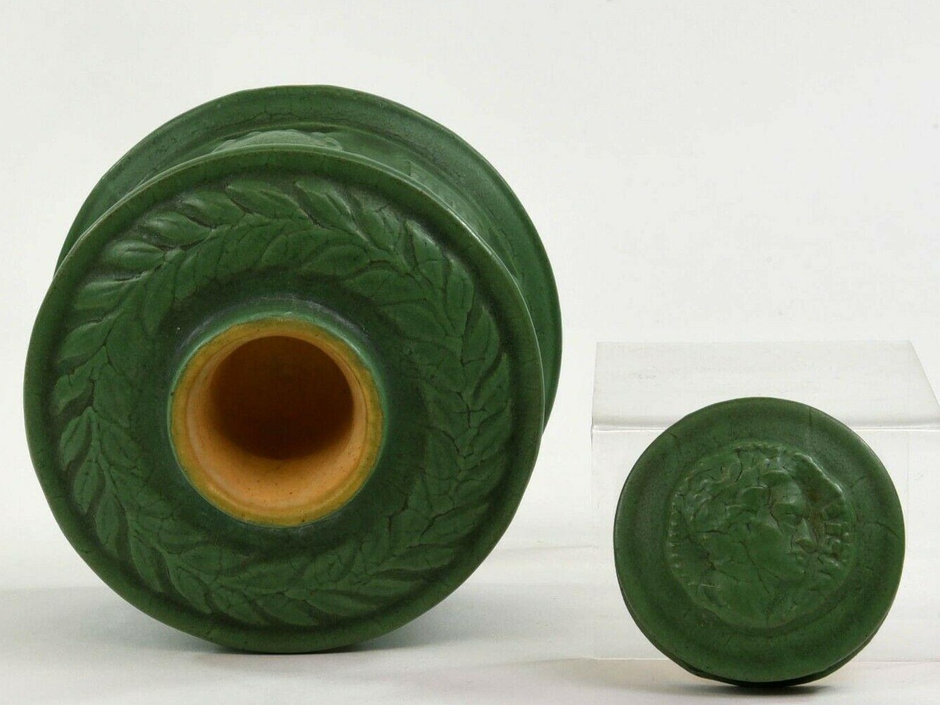 The combination of the Roman motifs, the classical Latin terms, and the patriotic eagles gives the piece a purposeful character, making it a wonderful example of Roseville’s artistic ambition and quality craftsmanship.