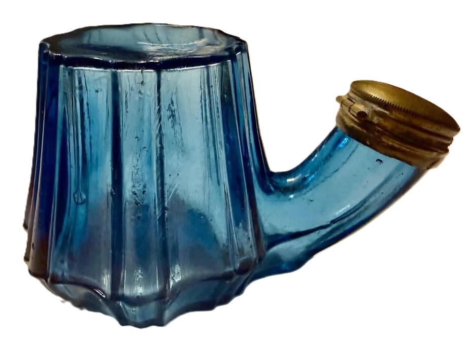 This is a classic Victorian “Teakettle” or “Syphon” ink bottle. These are favorites among bottle collectors because they managed to be both highly functional and incredibly stylish.