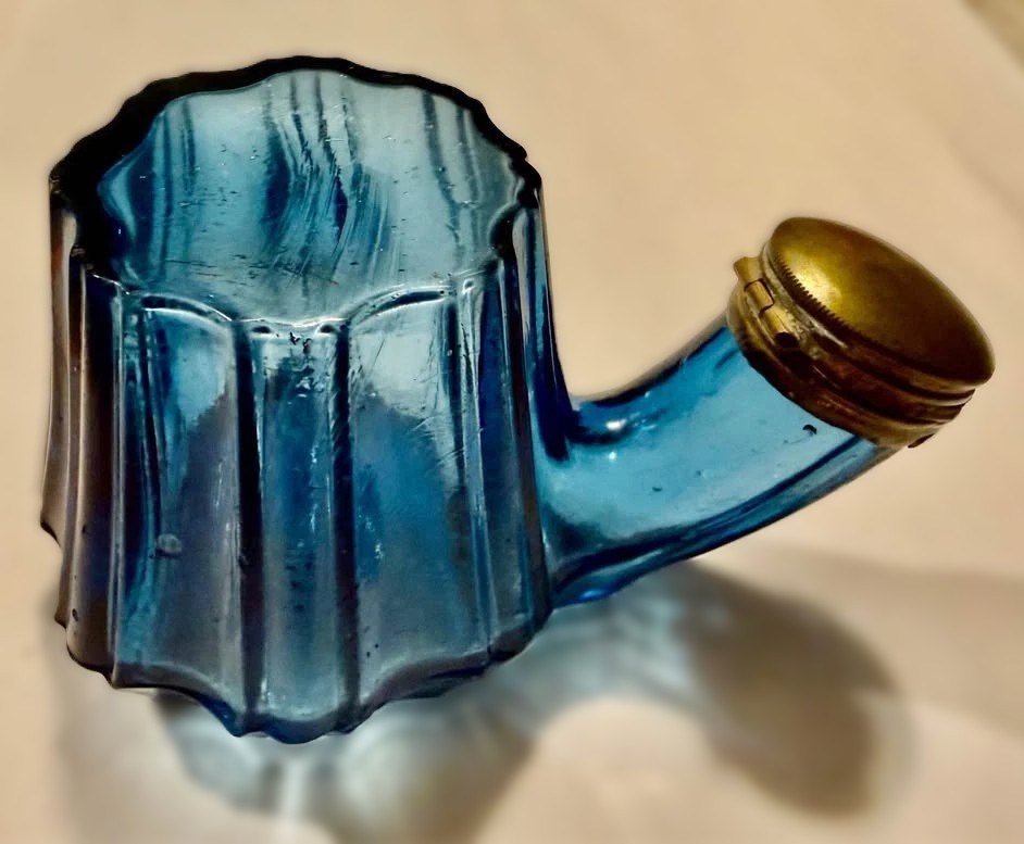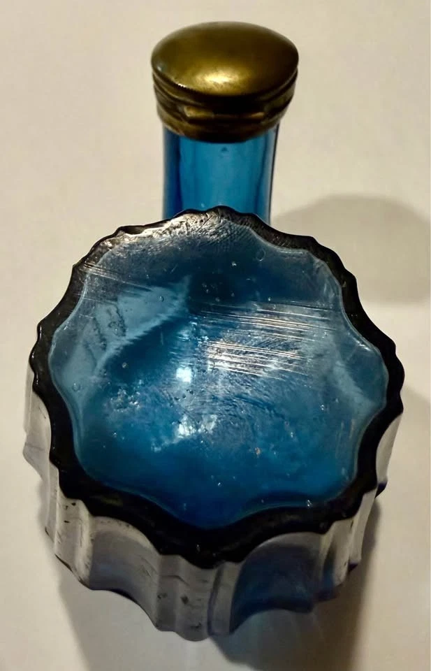 - Where it was made: Most of these were manufactured in the United Kingdom (Stourbridge was a major hub for this type of glassware), the United States, and especially France. Without a maker’s mark embossed in the glass, it’s hard to be certain, but the quality of the sapphire glass suggests a high-end commercial glasshouse from that era.