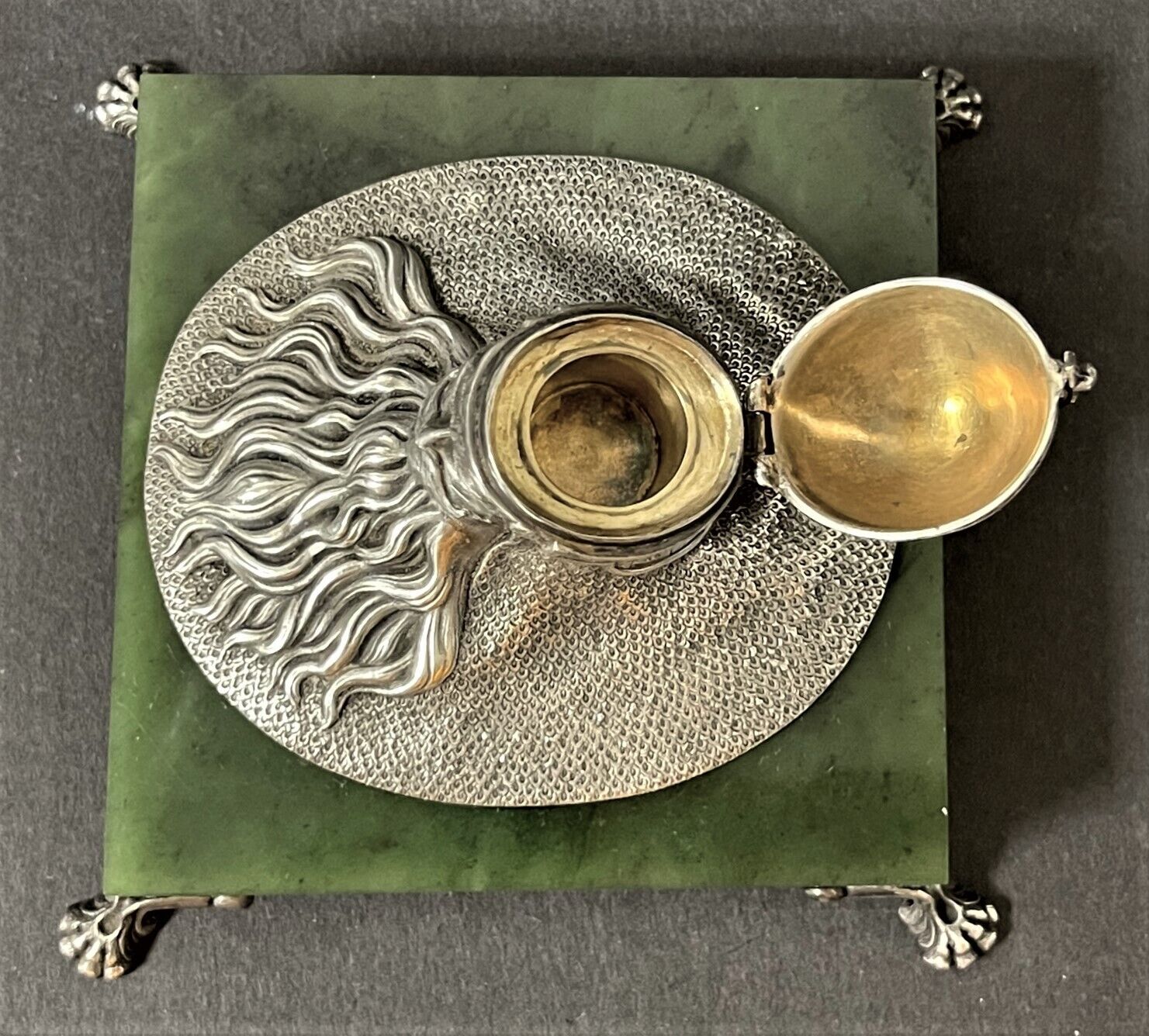 Silver and Jade Bogatyr Inkwell