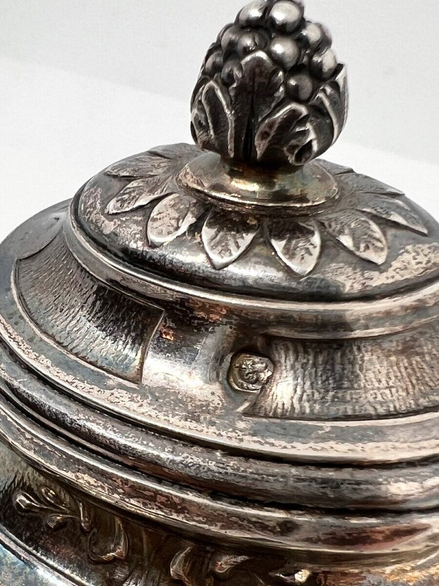 The Minerva hallmark is used in France to indicate the purity of silver. It specifically represents sterling silver (known as “argent massif” in French). The hallmark typically features the head of the goddess Minerva (Athena in Greek mythology). This image signifies that the silver content meets a high standard—950 parts per thousand or 95% silver—compared to the English standard of 92.5%.