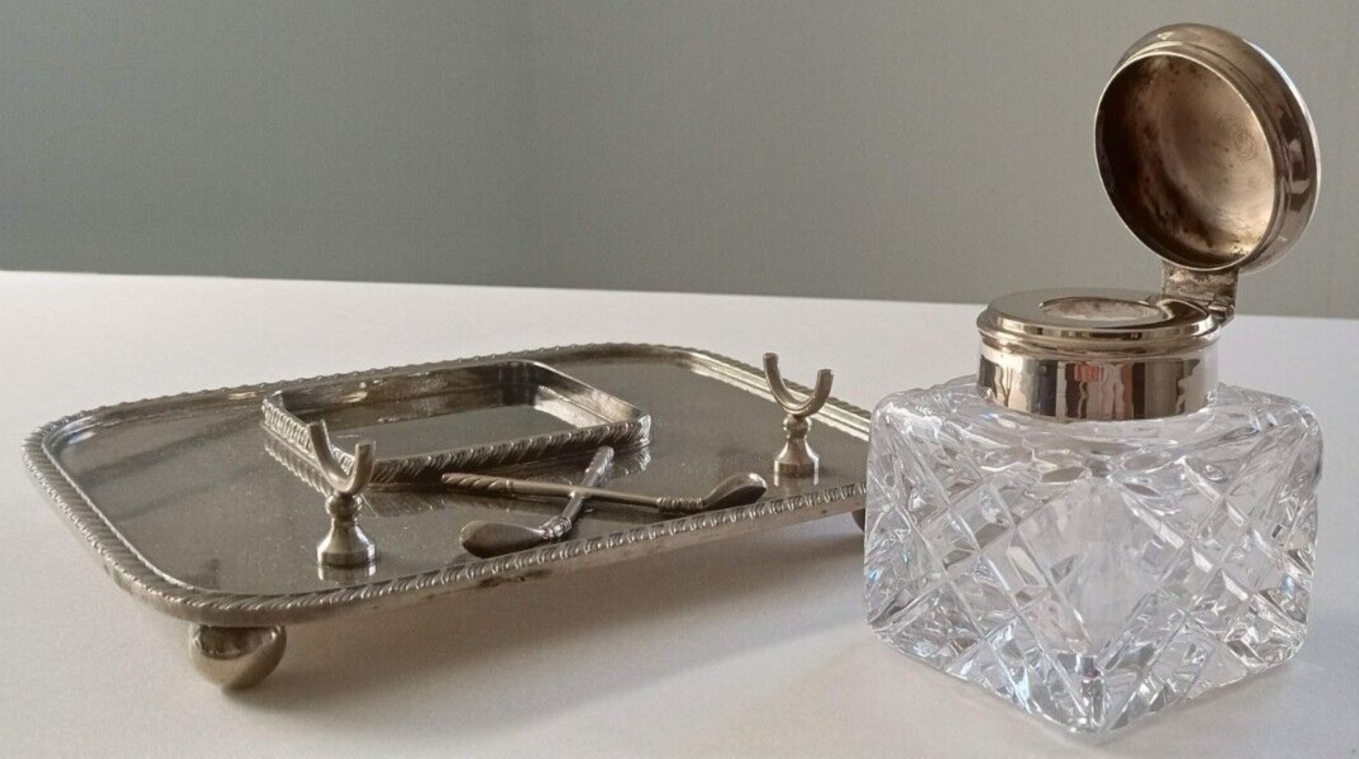 Silverplate Golfing Inkstand